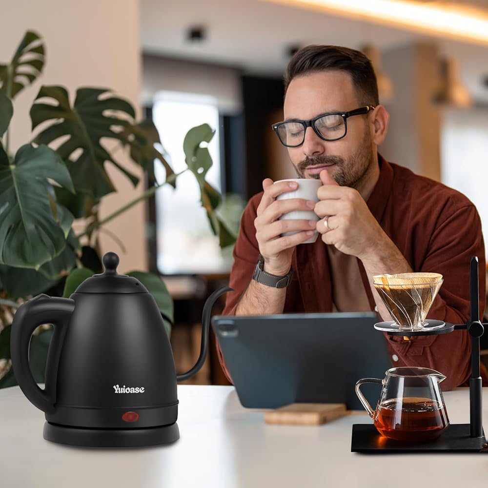【صب دقيق معزز】 تم تصميم غلاية كهربائية بصنبور معقوفة رشيق، مما يضمن تدفق مياه ثابت ومتحكم في كل زاوية صب. يضيف المقبض غير القابل للانزلاق المصمم هندسيًا الراحة والسهولة إلى العملية. مع مزيج من الفوهة المعقوفة والمقبض المثلث، سيكون مذاق القهوة والشاي أفضل من أي وقت مضى. ارفع مستوى روتينك اليومي للقهوة والشاي مع غلاية كهربائية استثنائية ذات رقبة منحنية، وهي الرفيق المثالي لسكب القهوة.