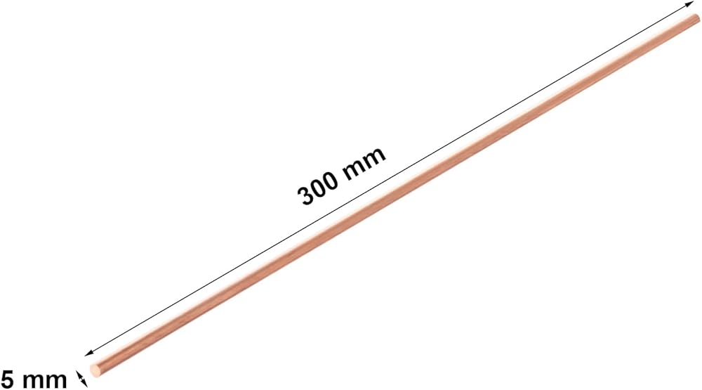 4 قطعة قضبان مستديرة من النحاس النقي بقطر 5 مللي متر وطول 300 مللي متر للحرف اليدوية اليدوية ومخرطة بار الأسهم المعدنية
