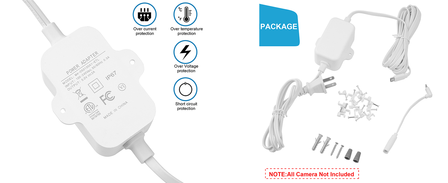استخدام داخلي وخارجي متعدد الاستخدامات: مصمم لتلبية متطلبات البيئات المختلفة، كابل الشحن الخاص بنا مناسب للاستخدام الداخلي والخارجي. إن بنيتها القوية وميزاتها المقاومة للطقس تجعلها مثالية لتأمين كاميرات Wyze الخاصة بك في أي مكان، مما يوفر طاقة مستمرة دون التنازل.