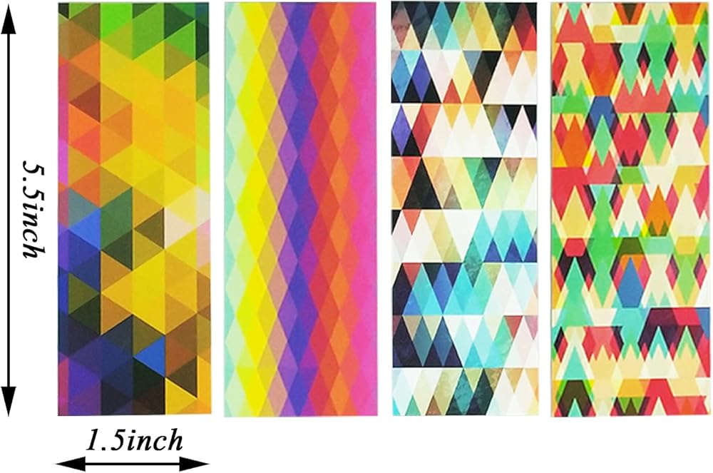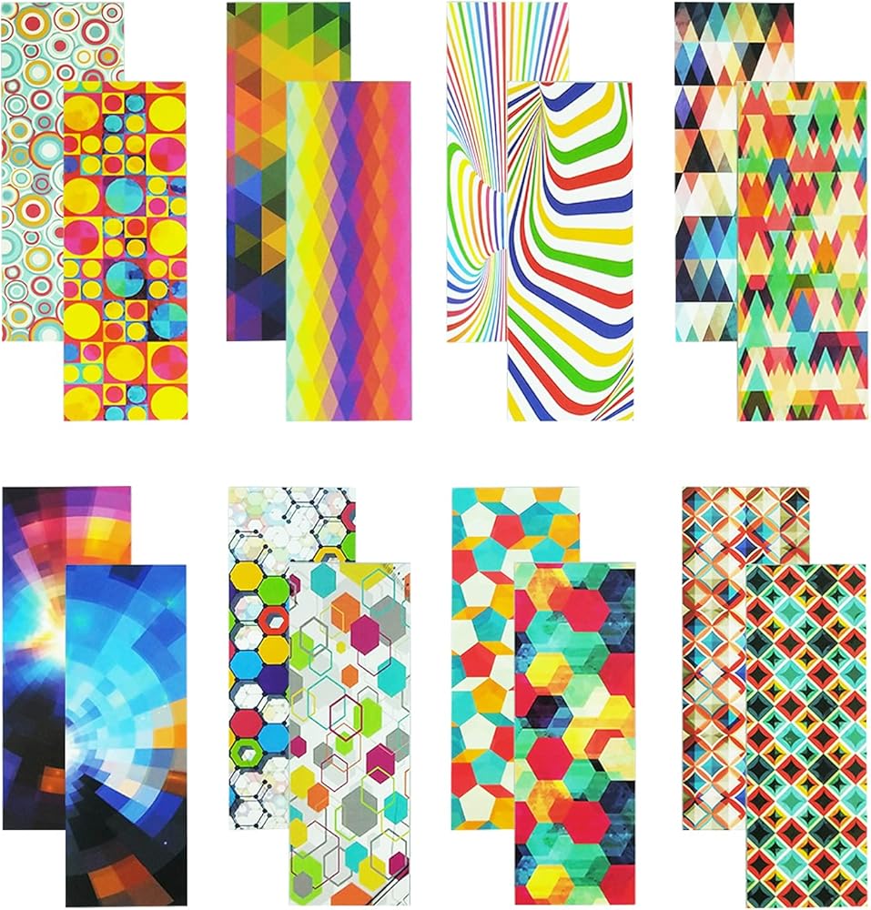 Optical Bookmarks: a set of 160 bookmarks with 8 styles. Different patterns are printed on both sides of each bookmark. There are 16 kinds of patterns in total, which can definitely meet your requirements. The size of each bookmark is 5.5x1.5 inch, suitable size.