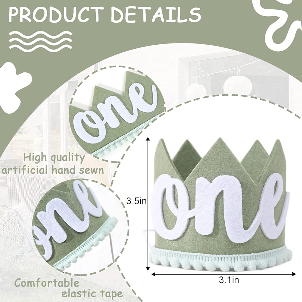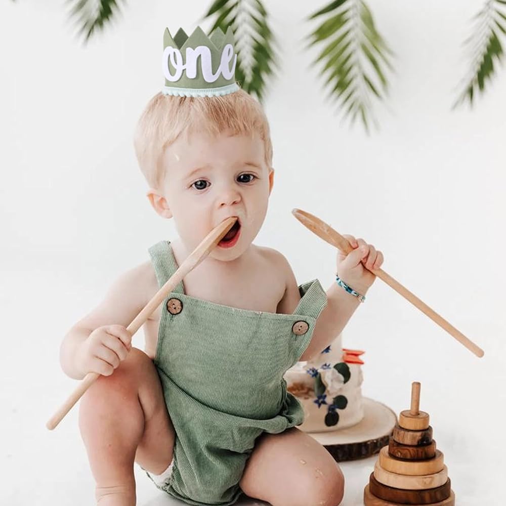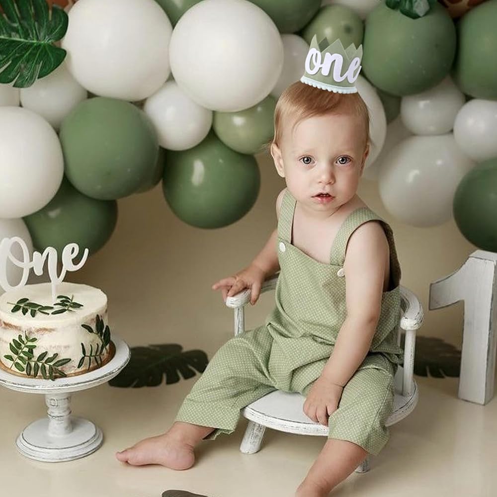 تاج عيد ميلاد بري واحد - زينة عيد ميلاد برية واحدة، التاج الأول لرحلات السفاري/الغابة/الغابة، تاج عيد ميلاد بطابع بري، زي تاج عيد الميلاد الأول للصبي، استحمام الطفل أول صورة دعائية لسحق الكيك (أخضر 2)