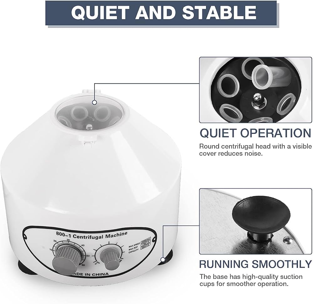 【Efficient & Stable】- The new centrifuge has a round centrifuge head with a top cover to effectively reduce noise. The motor components have a high degree of tightness, the motors run stably, have zero error design, and are efficient and stable. The motor and the base plate are connected by a damping column. the motor rotor runs smoothly, which can avoid motor vibration and is firm and stable.
