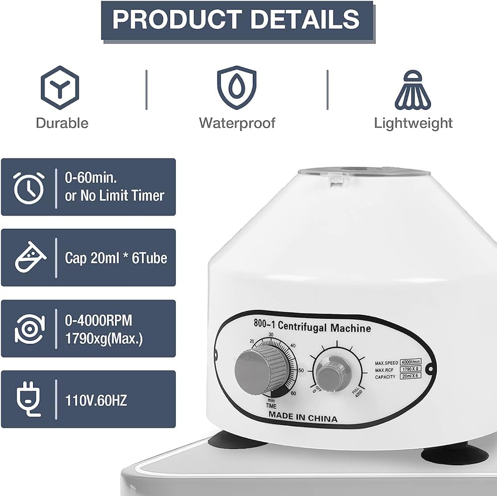 【Easy to Control】-Benchtop centrifuga is equipped with speed & timer control, and clear control panel. The centerfuge machine shell is made of high-strength plastic. Structure is simple and easy to operate this lab centrifuge.