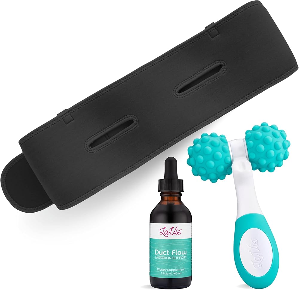 حزمة لافي، أسطوانة تدليك الرضاعة، صبغة 2 أونصة، وحمالة ضخ للرضاعة الطبيعية أو الرضاعة أو الضخ بدون استخدام اليدين، دعم أساسي للقنوات المسدودة، والتهاب الضرع، والاحتقان