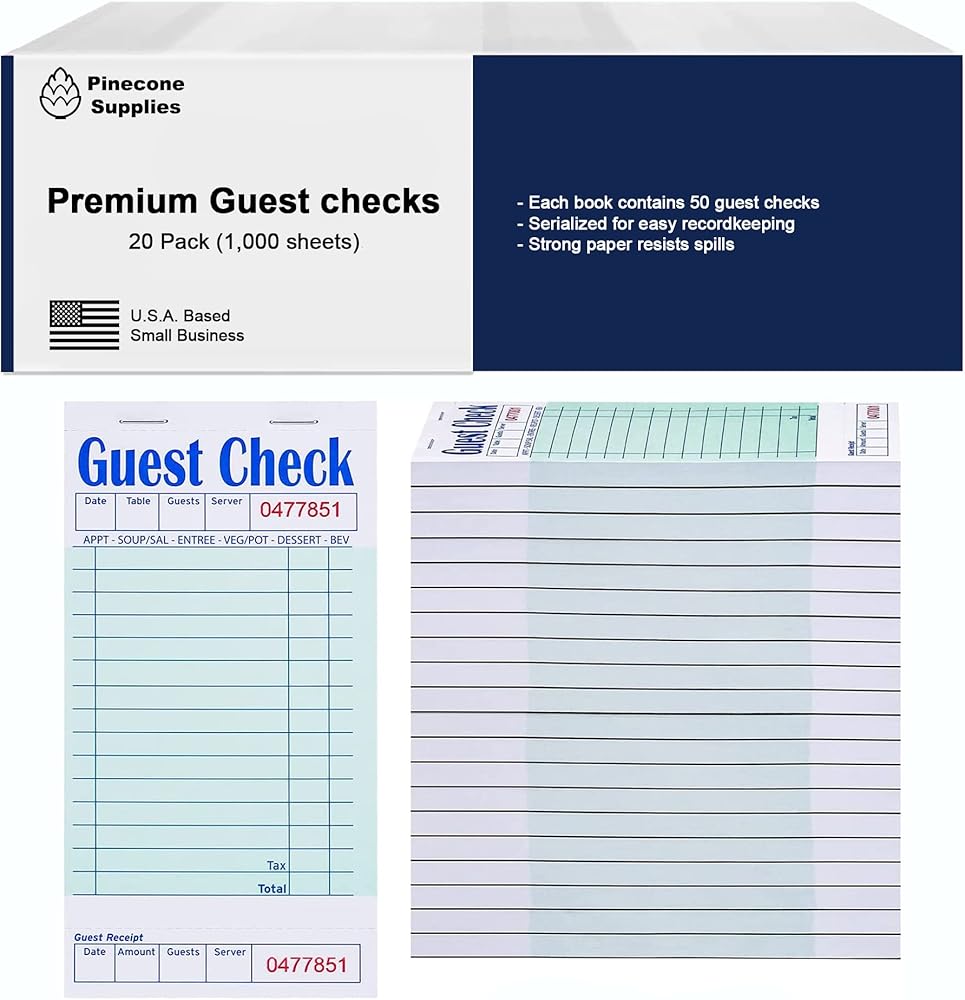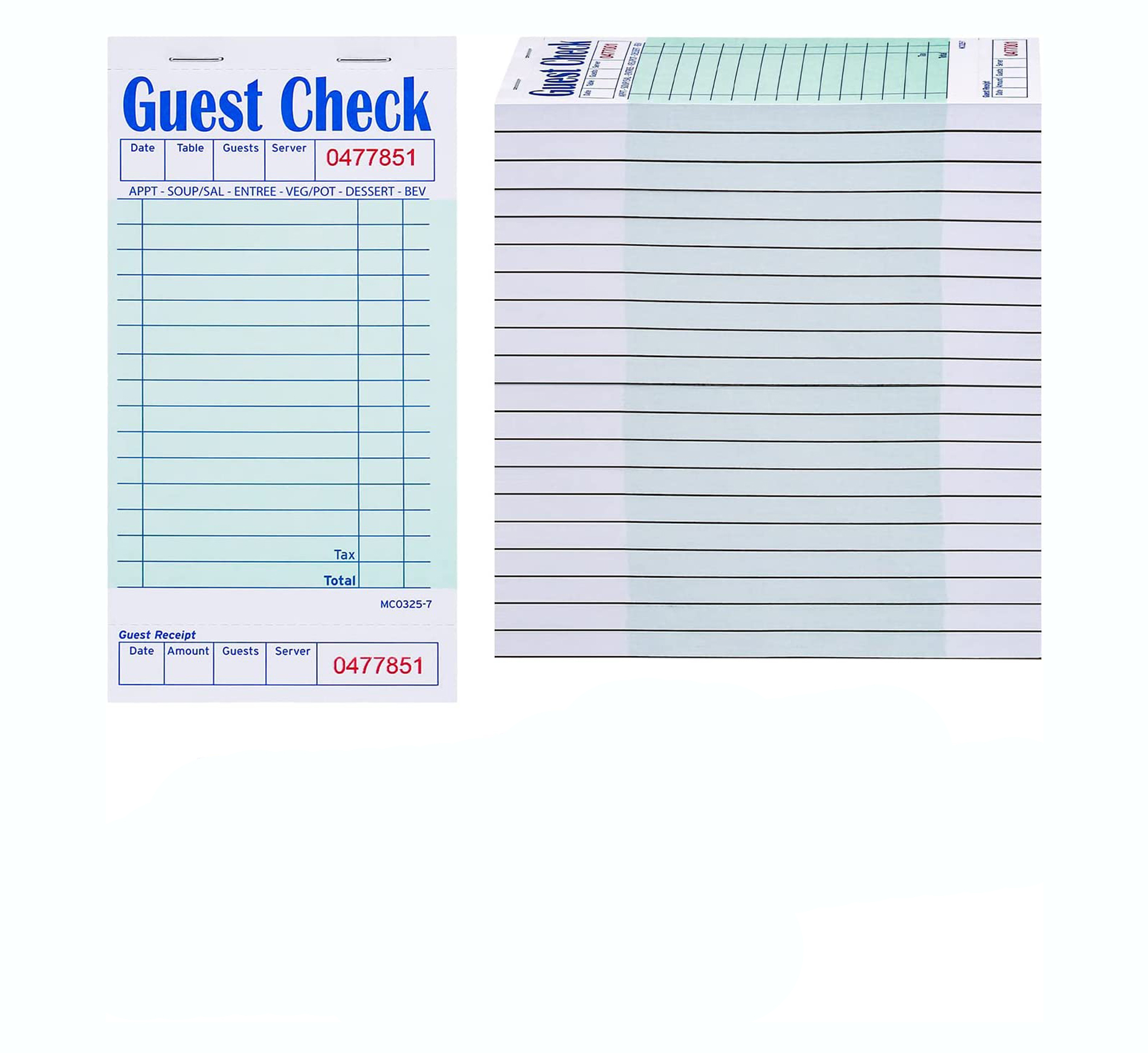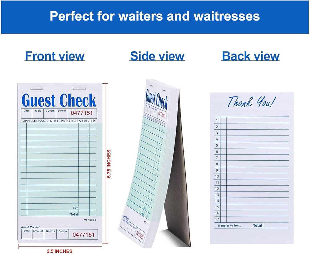 ضرورية للخوادم - لا غنى عن وسادات فحص الضيوف هذه لكل نادل أو نادلة. باستخدام الصفحات المتسلسلة، يمكنك تتبع الطلبات بدقة وسهولة. أفضل بكثير من تلقي الطلبات على المفكرة العادية أو الورق الخردة