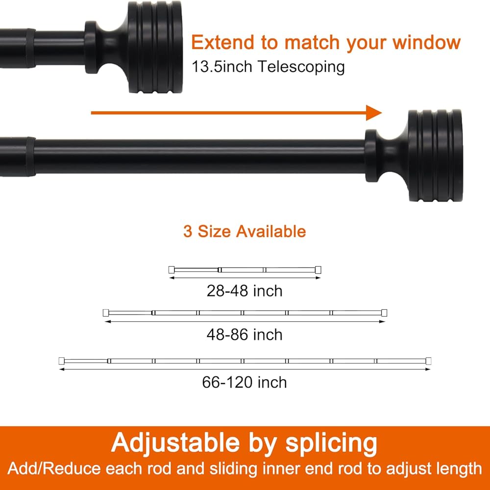 قابلة للتعديل لتناسب النوافذ مقاس 28-48 بوصة، اختر قضبان الستارة ذات الحجم المناسب وفقًا لطول نافذتك. يمكنك تعديل قضيب الستارة ليناسب احتياجاتك دون الانزعاج من أخطاء القياس الصغيرة.