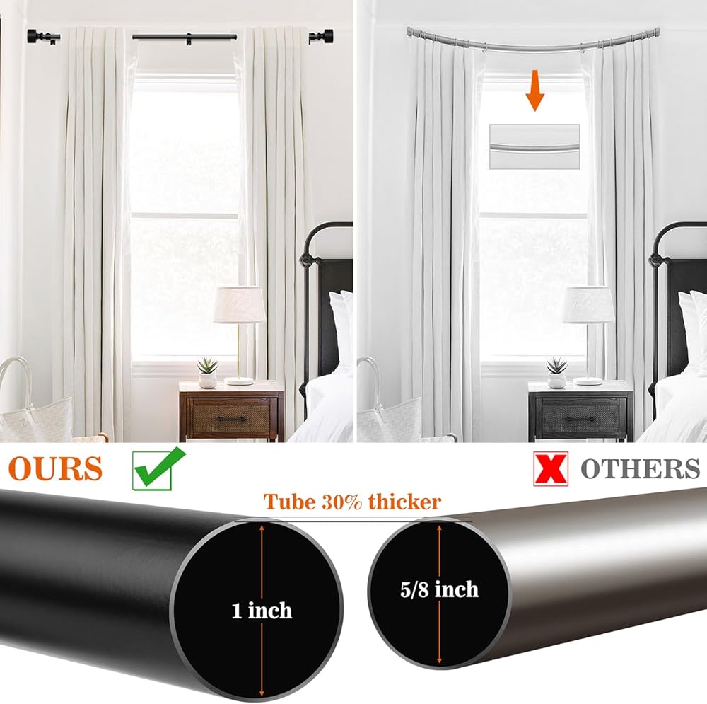 قضبان ستائر عالية الجودة، قضبان ستائر عالية الجودة بسمك 2.54 سم مصنوعة من الحديد مع دعامات حديدية ومسامير قوية. يتم معالجة كل قضيب بعملية طلاء خبز مثبتة، وسطح أملس، ويمكن لقضبان الستارة أن تتحمل ما يصل إلى 50 رطلاً دون أن تغرق.