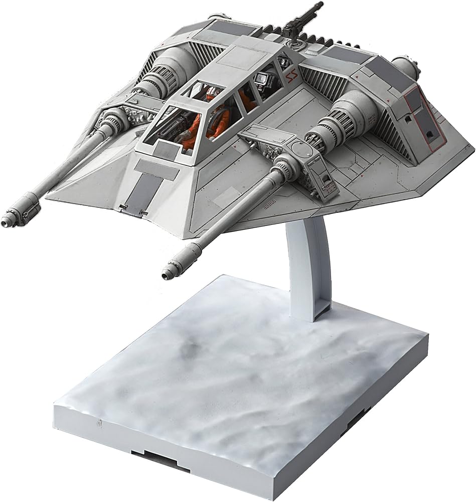 The Snow speeder as featured in "Star Wars: the Empire strikes back" Has been faithfully recreated as a 1/48 scale model kit utilizing Bandai's patented four color injection process that allows for construction of highly detailed parts that are Color molded reducing the need for paint.  snow wing includes 2 1/48 seated figures, 2 canopy types (clear plastic or frame)  collect multiple fighters to form your own squadrons! A nipper or sprue cutter (sold separately) is required for assembly, but does not require glue.  includes snow terrain themed dedicated display base x 1, Laser effect part x 2, Power harpoon part x 1, air brake open/close part, Runner x5. Marking sticker x 1 water-transfer decal x 1 look for origin of shipment: only items shipped from within North America are being sold by authorized U.S. Retailers. The product box will have a Bluefin warning label, which is proof that you are purchasing an officially licensed Bandai product, distributed by its sole and authorized distributor (Bluefin distribution) for the U.S. Markets. This product has been thoroughly tested for safety and meets all North American consumer product safety regulations. The affixed label with the Bluefin distribution logo also entitles the purchaser to product support assistance.