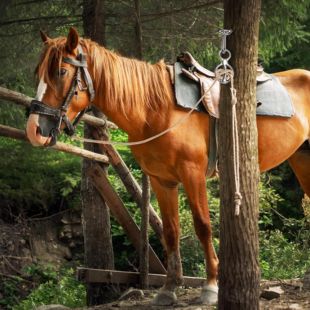 أداة آمنة وإنسانية: حلقة ربط Cididu للأحصنة تسمح لحبل الرصاص بالتغذية تدريجيًا من خلال الحلقة عندما يسحب الحصان للخلف حتى لا يصل إلى توقف قوي، وبالتالي يقلل من خطر إصابة كل من الحصان والمدرب.