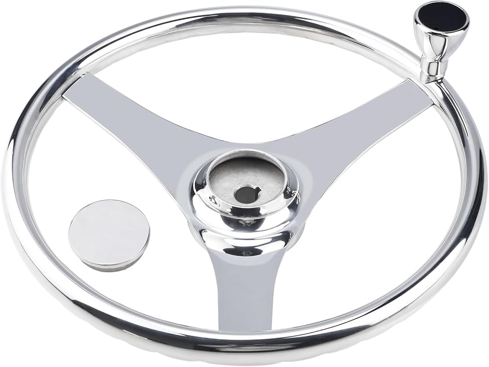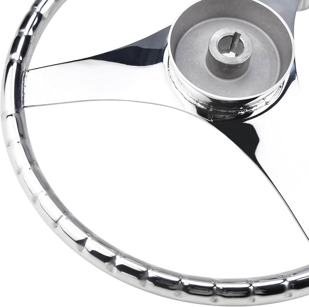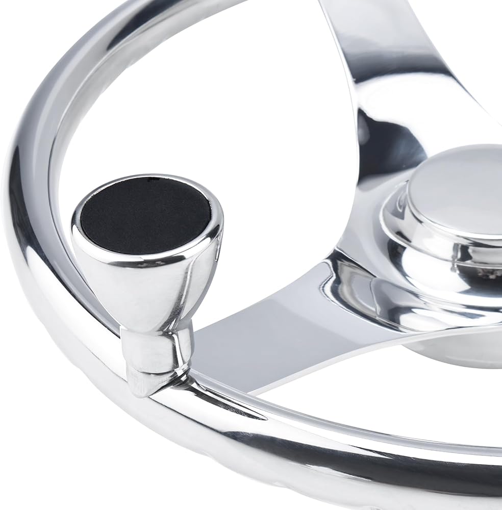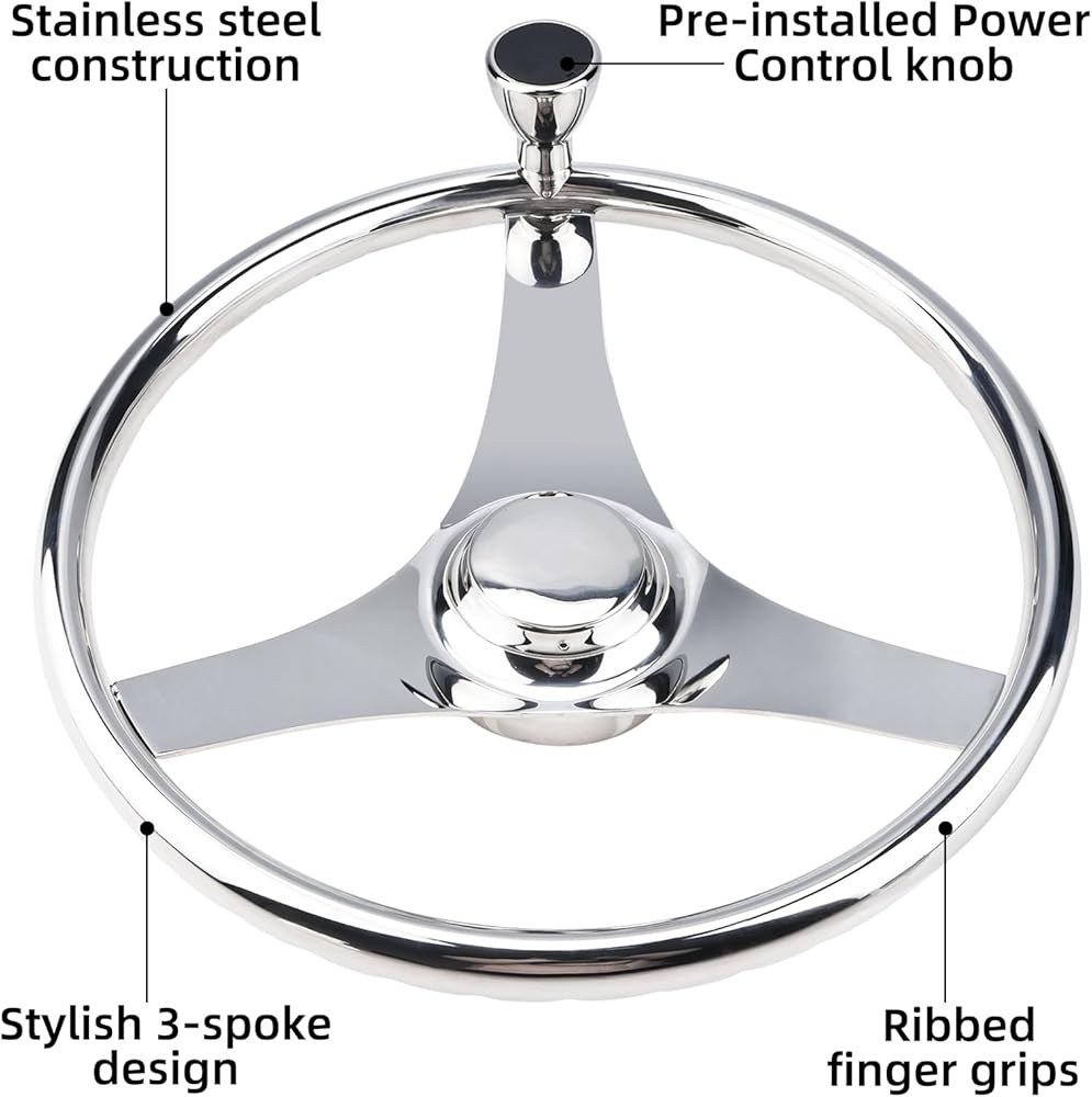 YaeMarine Stainless Steel Marine Boat Steering Wheel 13-1/2" Dia 3 Spoke Sports Steering Wheel Finger grips with Control Knob and Cap