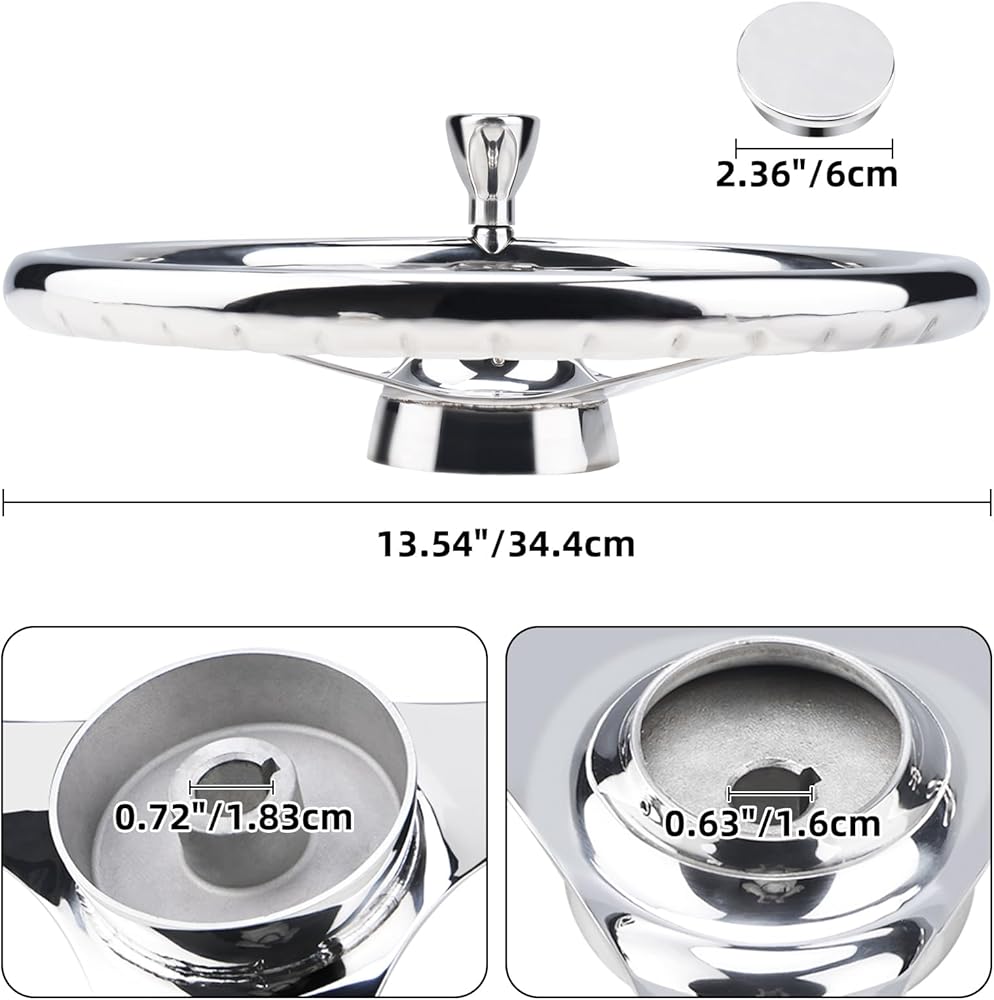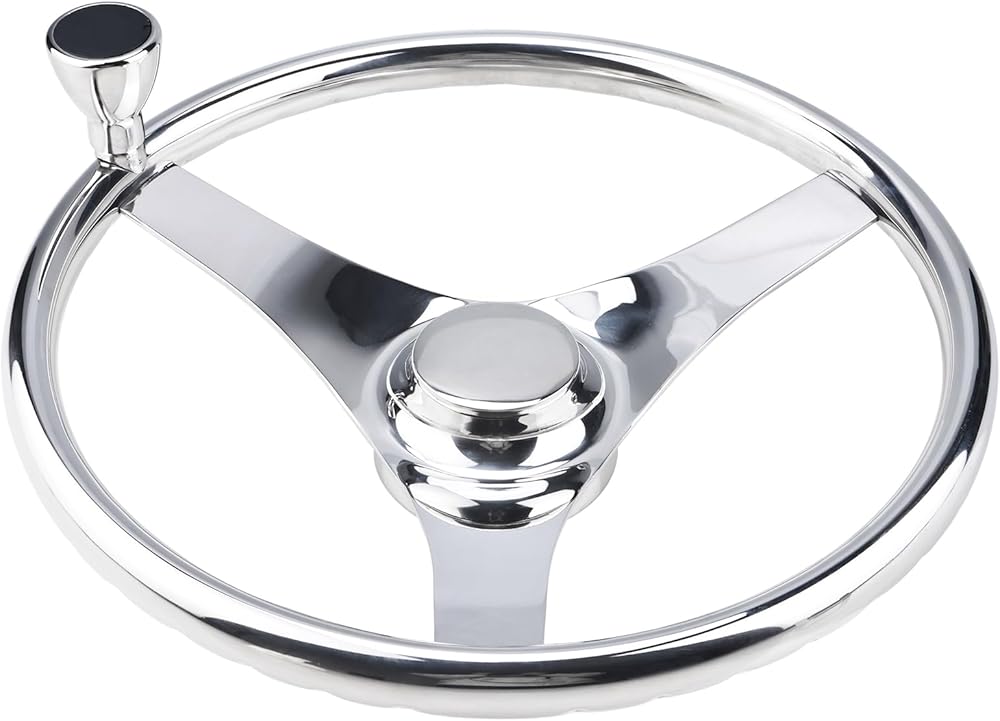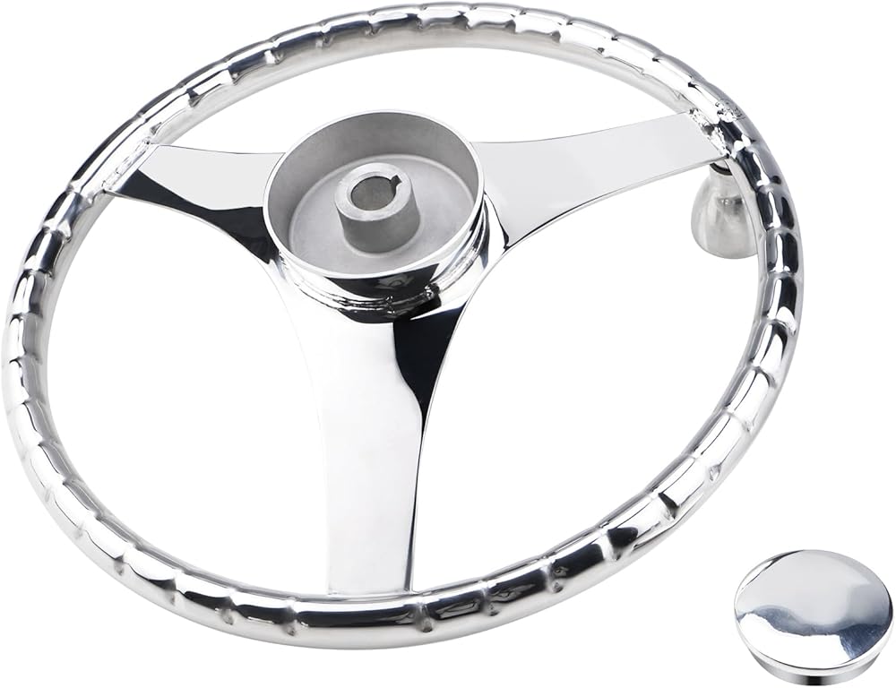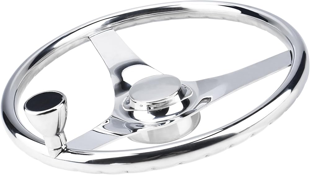 YaeMarine Stainless Steel Marine Boat Steering Wheel 13-1/2" Dia 3 Spoke Sports Steering Wheel Finger grips with Control Knob and Cap