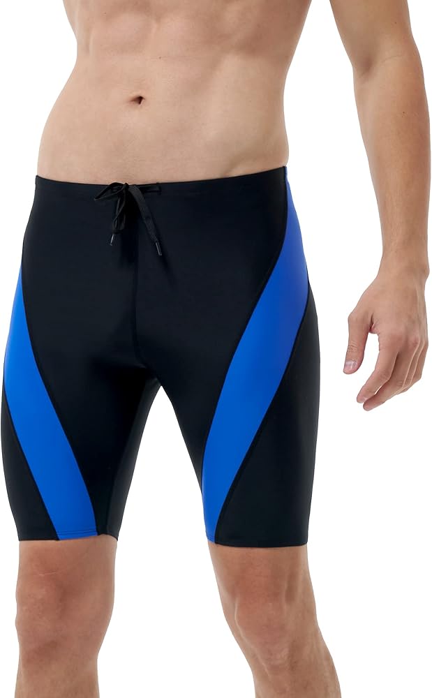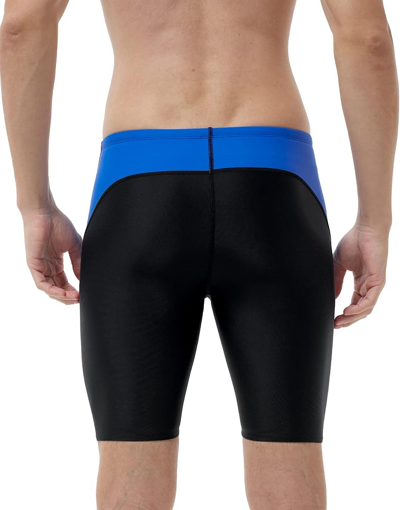 ملابس سباحة Runhit للرجال بعامل حماية من الأشعة فوق البنفسجية 50+ ملابس سباحة صلبة للسباقات التنافسية والتدريب أسود أزرق L