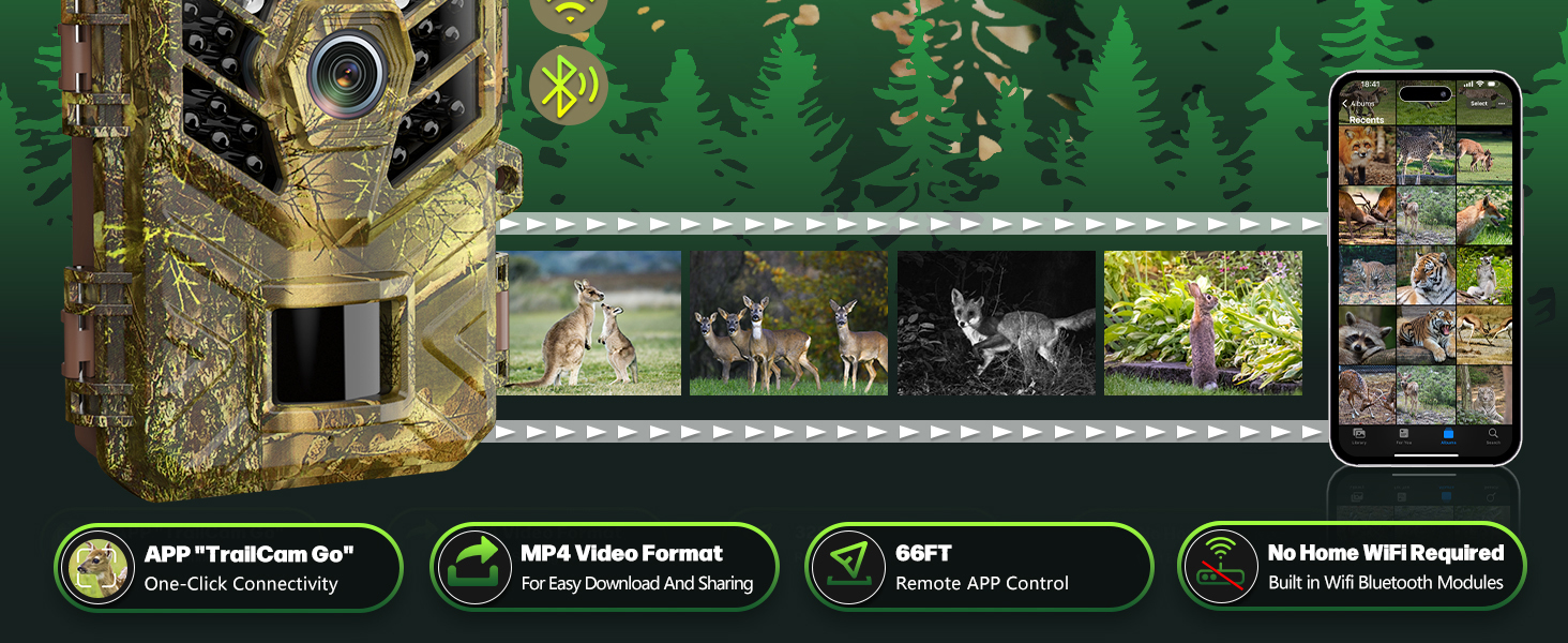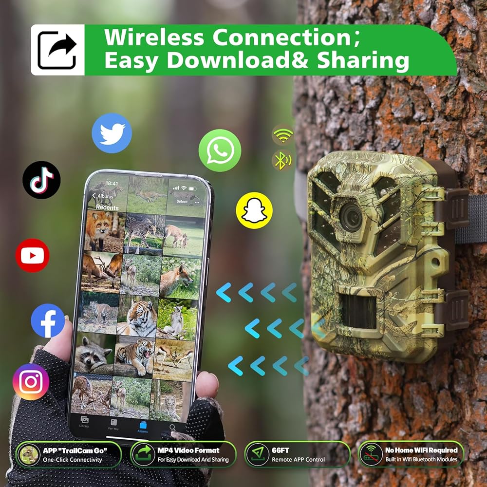 اتصال لاسلكي واتصال سهل بنقرة واحدة: استمتع بحرية التشغيل اللاسلكي دون الحاجة إلى شبكة WiFi منزلية. توفر كاميرا wifi Trail هذه وصولاً سلسًا عن بعد من خلال التطبيق سهل الاستخدام من مسافة تصل إلى 66 قدمًا. استمتع بالاتصال بنقرة واحدة، وقم بربط الكاميرا الخاصة بك بهاتفك الذكي دون عناء. ابق متحكمًا في لقطاتك وراقبها وأديرها بسهولة (بطاقة الذاكرة والبطارية غير متضمنة)