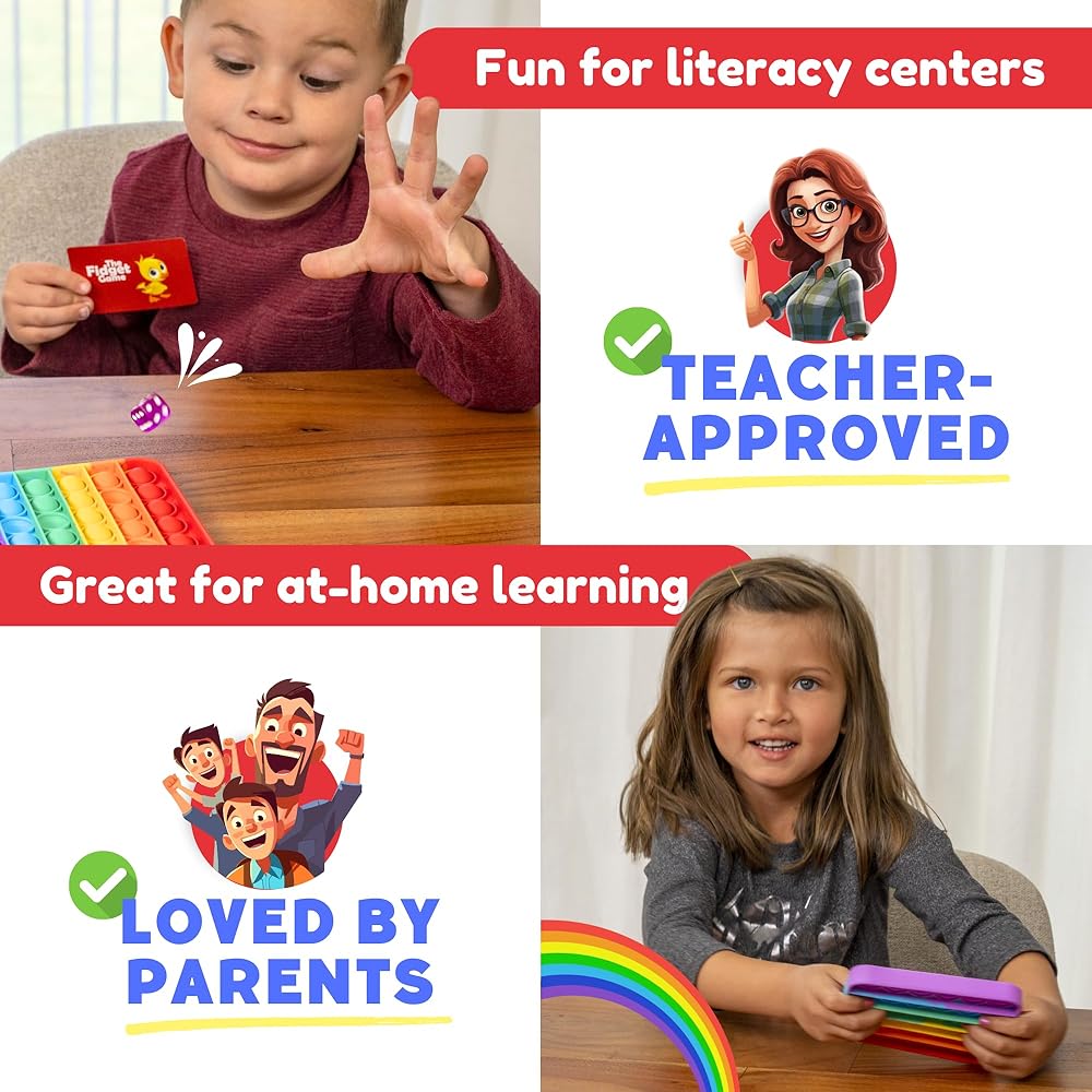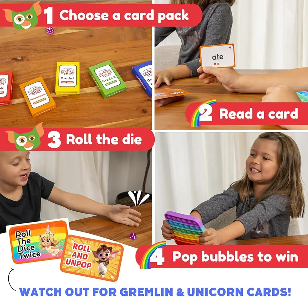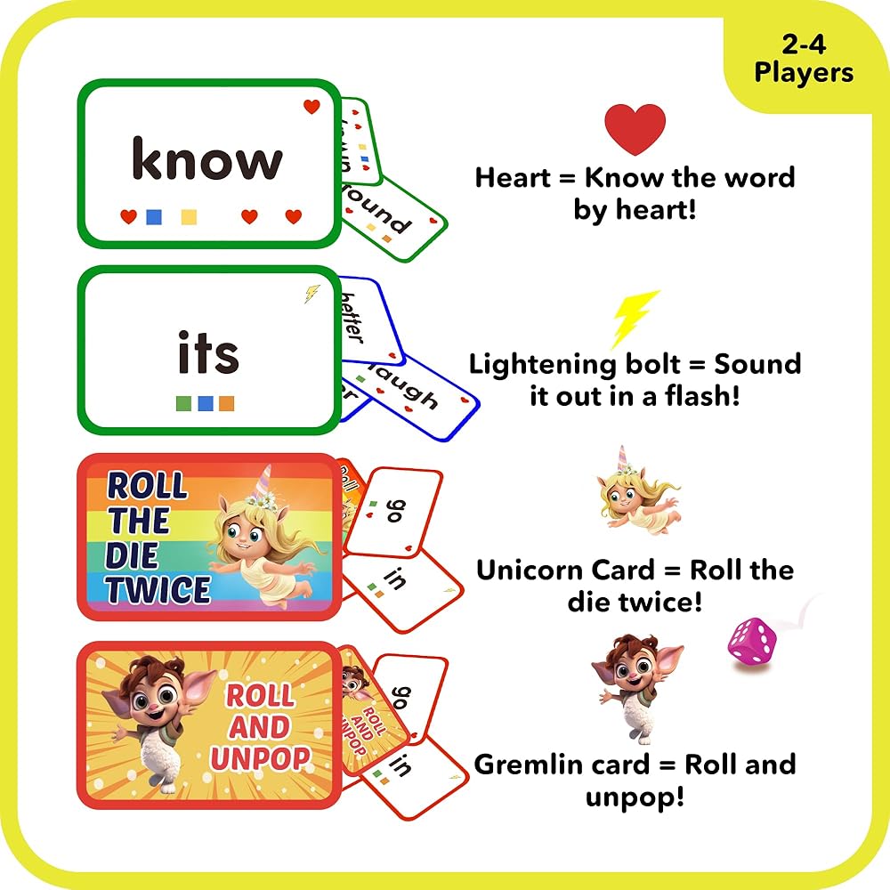 متعة التعلم: شاهد عيون طفلك تضيء بدهشة بينما يقوم بدحرجة النرد، وفرقع الفقاعات، والصراخ "يونيكورن!" والأفضل من ذلك، أن لعبة القراءة هذه يمكنها تحسين معرفة طفلك بنسبة تصل إلى 25%.