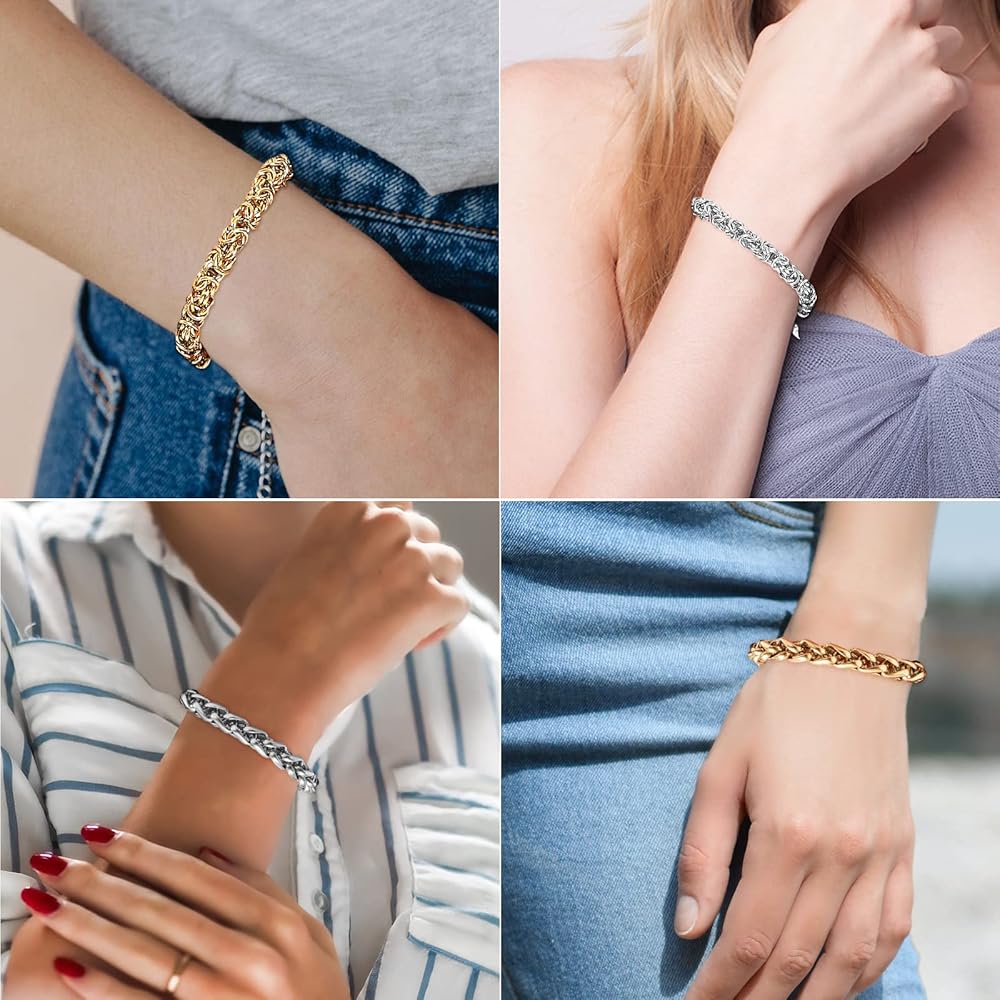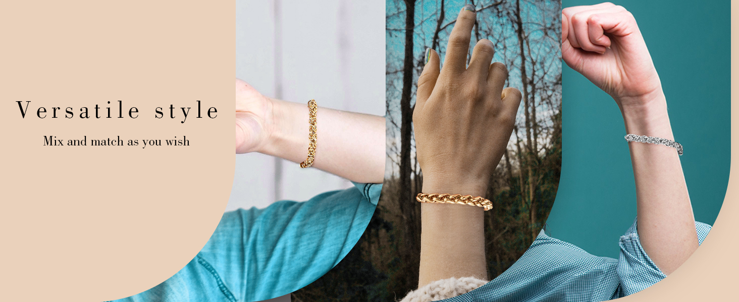 المواد: أساور يامي مصنوعة من الفولاذ المقاوم للصدأ 316 مطلية بالذهب، معدن لا يسبب الحساسية، مضاد أكسدة مغناطيسي منخفض، أكثر مقاومة للتآكل، لا خوف من تآكل العرق والماء، يحافظ دائمًا على بريقه المعدني الطبيعي، لا يتغير لونه.