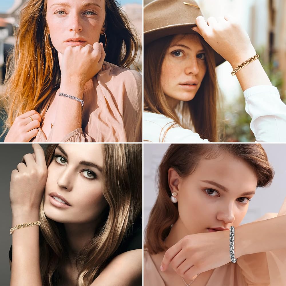 حجم أساور الذهب القمح: سوار الإسورة قابل للتعديل للنساء 7.5 بوصة + 1.5 بوصة، مشبك حلقة زنبركية مريح ومتين