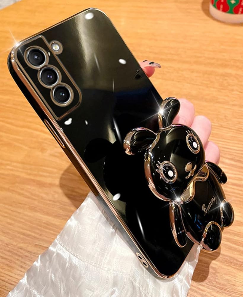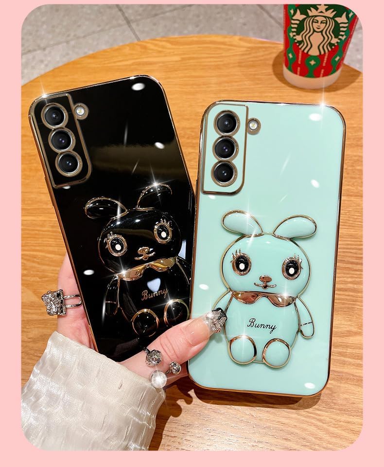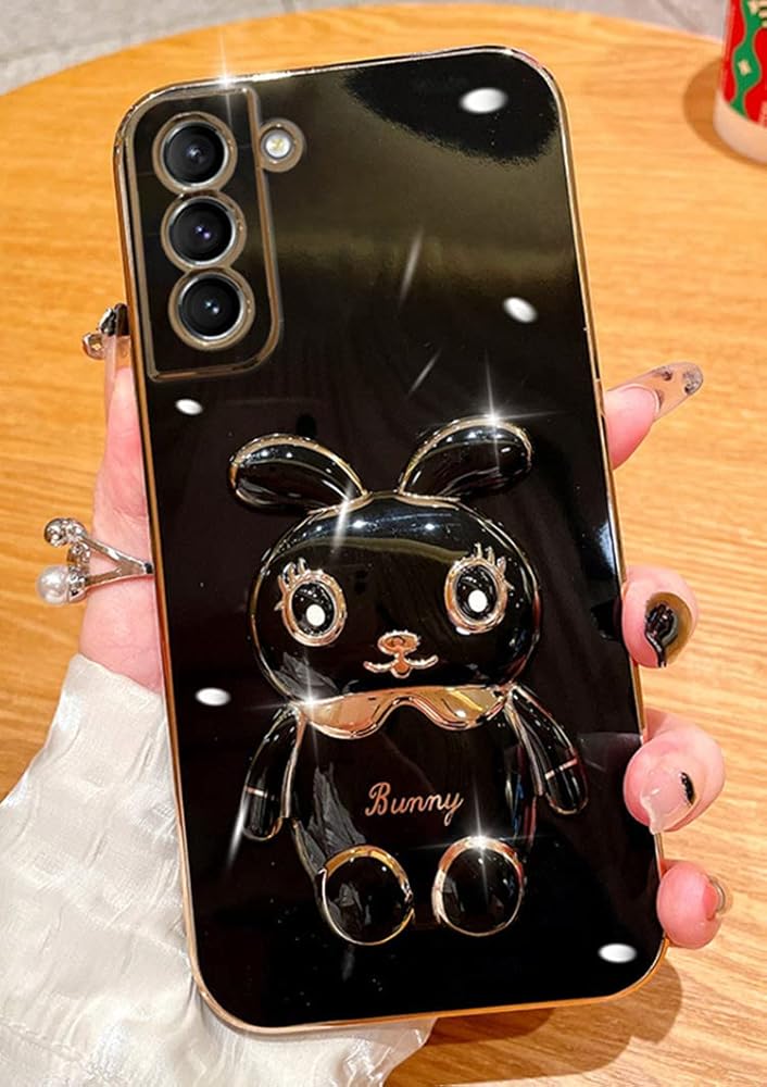 حافظة لهاتف سامسونج A15 5G ثلاثية الأبعاد بتصميم كرتوني لطيف على شكل أرنب مخفي للنساء والفتيات، حافظة هاتف بناتي من السيليكون الناعم اللامع بطلاء فاخر مع غطاء حماية للكاميرا لهاتف جالاكسي A15 أسود