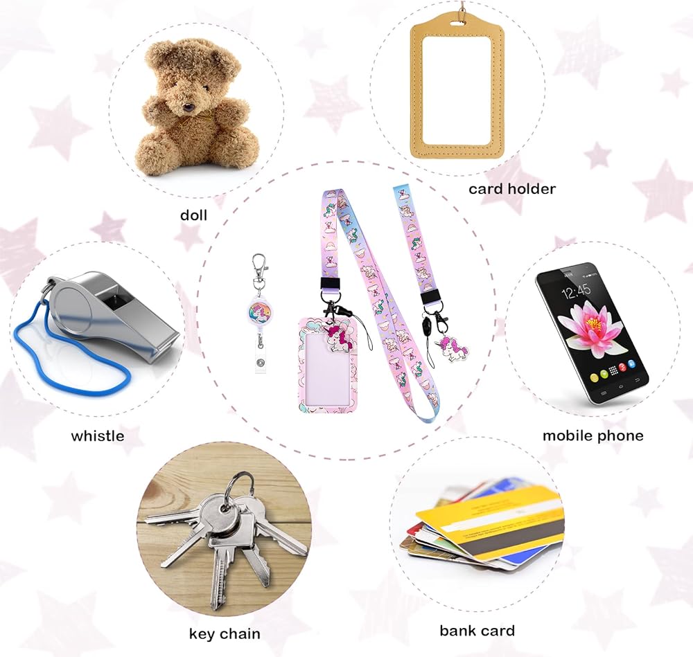تصميم بسيط وفريد من نوعه: يتميز الحبل وبطاقة الهوية بطباعة لطيفة على الأمام والخلف. لون مشرق وحلقة مفاتيح كرتونية صغيرة لطيفة تجعلها أكثر حيوية ورائعة. بسيط وأنيق، وخفيف الوزن، ومريح وناعم، مع فتحة/فتحة حبل لسهولة التركيب والإزالة.