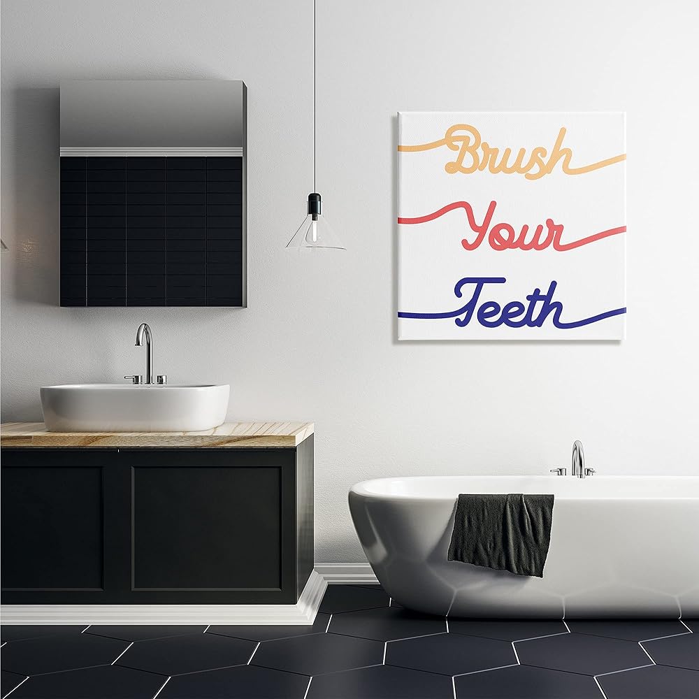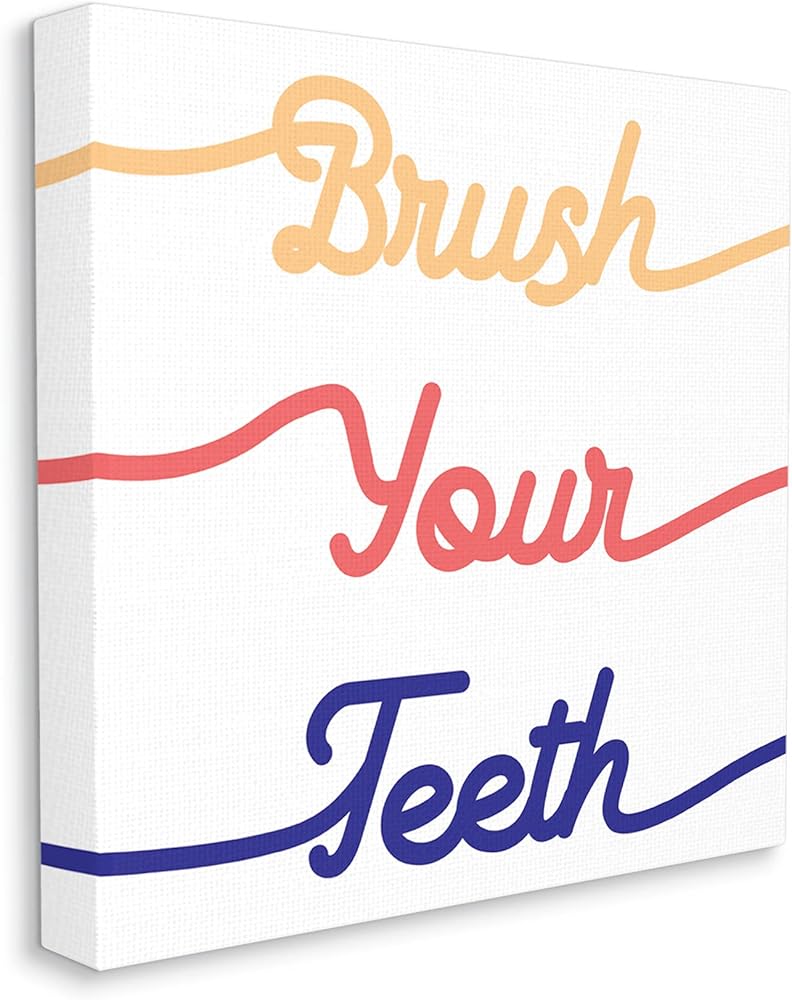 Stupell Industries فرشاة أسنانك لنظافة أسنان حمام الأطفال، صممها Daphne Polselli لوحة فنية جدارية من القماش، 30 × 30، متعددة الألوان