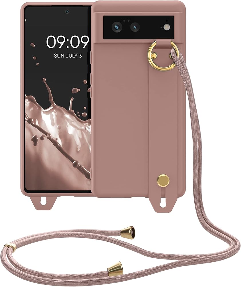 حافظة kwmobile متوافقة مع Google Pixel 6 - غطاء هاتف ناعم من مادة TPU مع حامل حزام يد وحبل - وردة شتوية