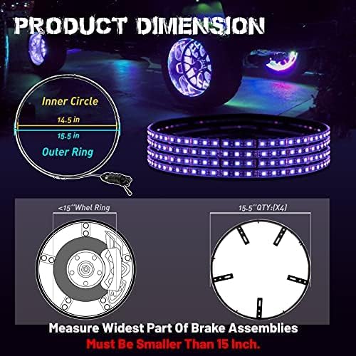【الإعداد】تم تصميم هذه المصابيح الحلقية للعجلات مقاس 15-1/2 بوصة للعجلات التي يبلغ قطرها 18 بوصة و19 بوصة وحجم مجموعة الفرامل بقطر 15 بوصة أو أصغر. قد لا تسمح بعض قوانين الولاية بالتثبيت، يرجى التأكد قبل الشراء.