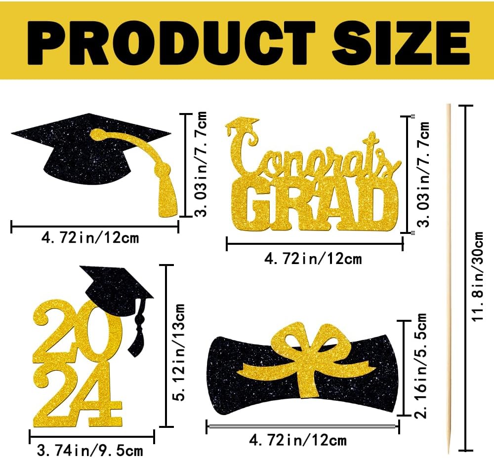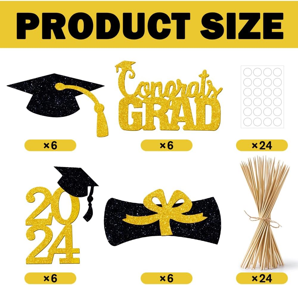 العبوة: سوف تحصل على 24 قطعة مركزية لحفلات التخرج 2024، الحروف الكبيرة تجعل من السهل رؤيتها من مسافة بعيدة وتجذب انتباه الضيوف، وديكور تخرج رائع للاستخدام الداخلي والخارجي.