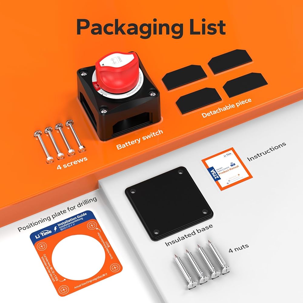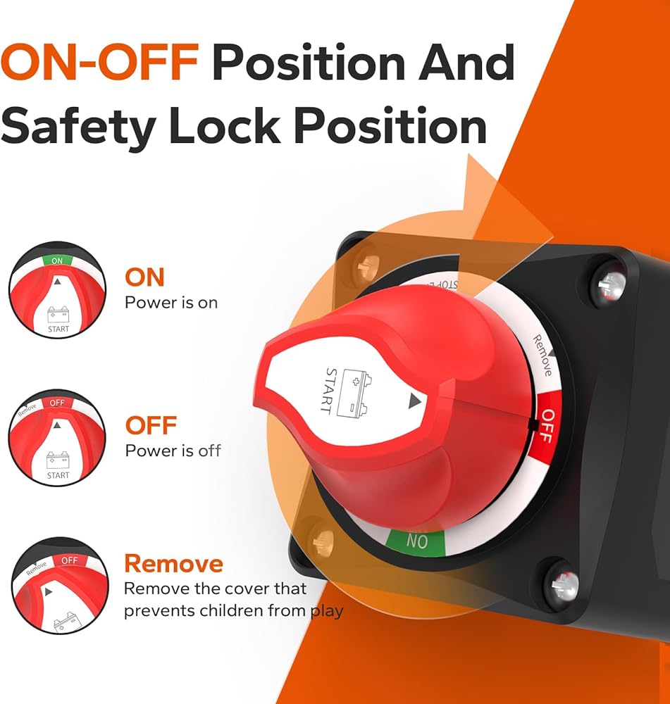 تطبيق على نطاق واسع: مفتاح إيقاف تشغيل البطارية هذا مناسب لنظام تيار مستمر 12 - 48 فولت لتأمين النظام الكهربائي. يستخدم على نطاق واسع للسيارات، والبحرية، والقوارب، وRV، والتخييم، ومقطورة السفر، والشاحنات، وATV، وUTV، وبنوك البطاريات، ومفاتيح المعدات الكهربائية الأخرى.