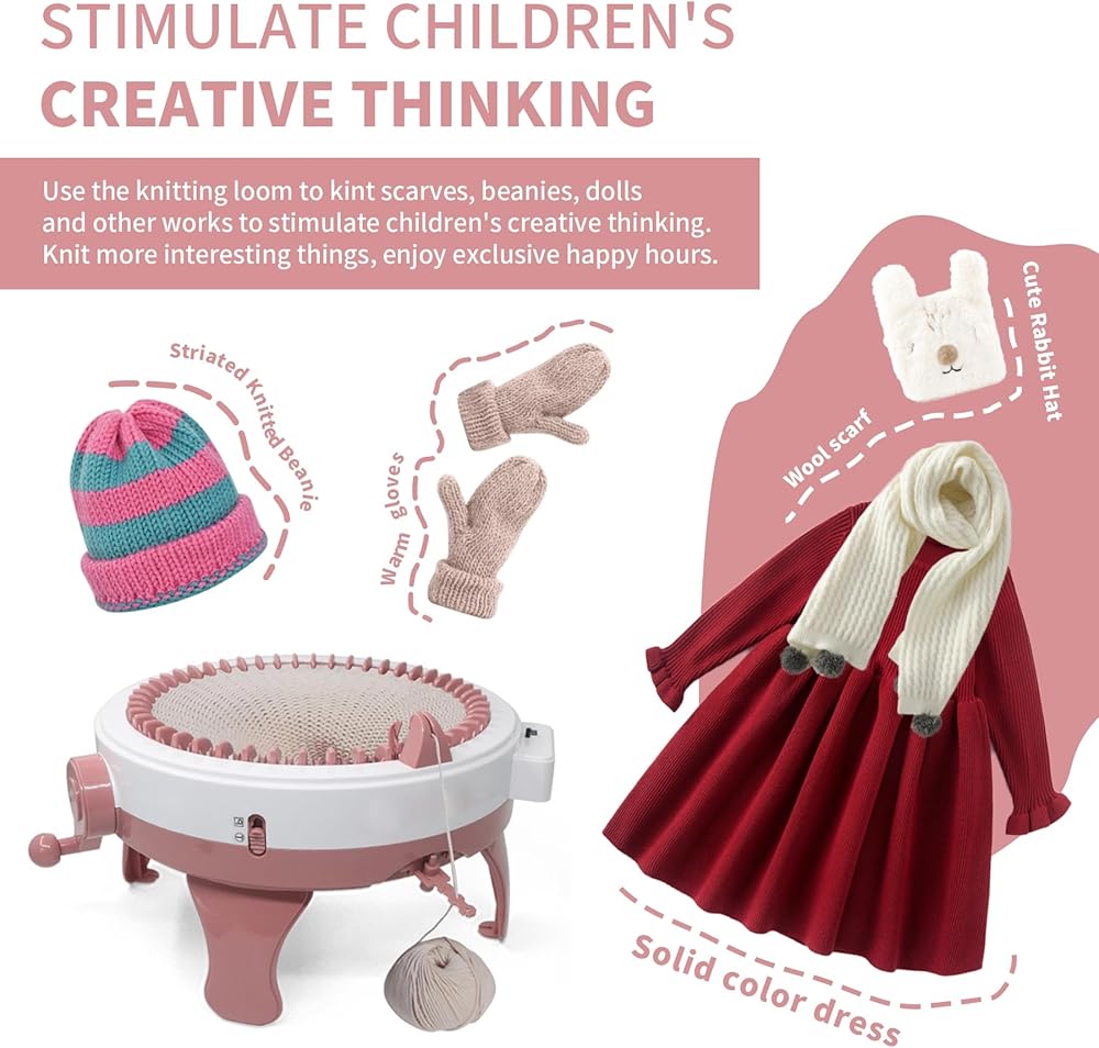 【سرعة الحياكة】يمكن لآلة الحياكة هذه أن تساعدك على حياكة القبعات والأوشحة والجوارب والقرع وما إلى ذلك. بسهولة وسرعة، ماكينة الحياكة ذات 48 إبرة أسرع 15 مرة من الحياكة اليدوية التقليدية، والتي لا توفر الوقت فحسب، بل تجعل الأمر أسهل أيضًا.