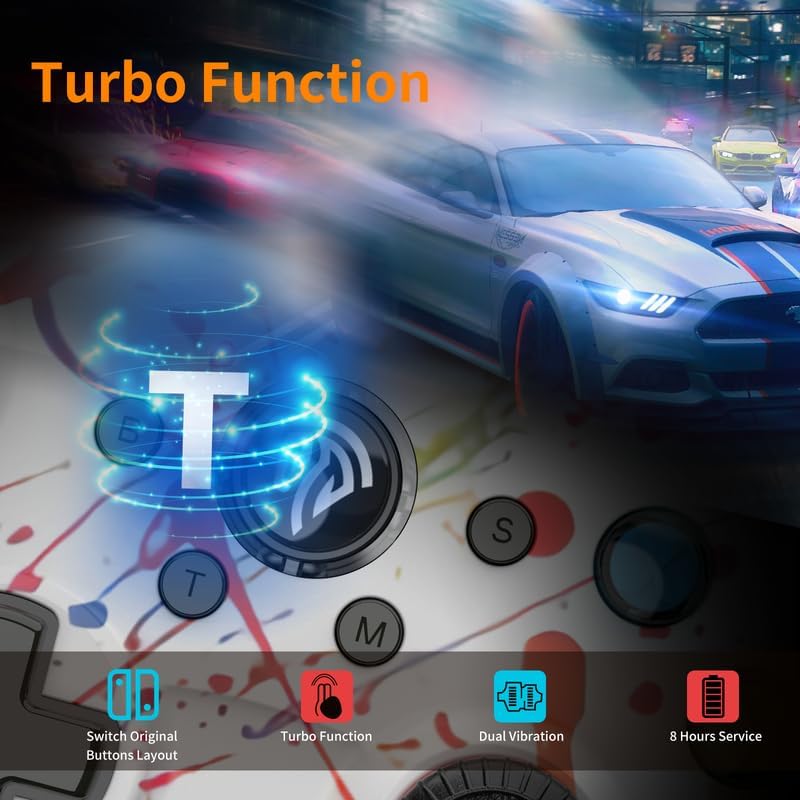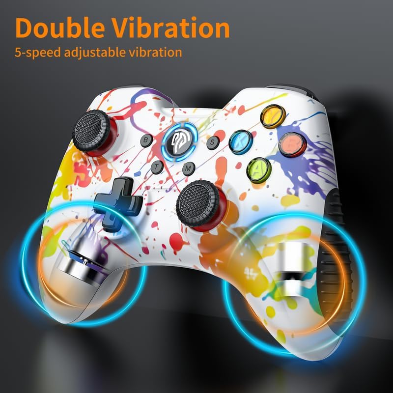 • 🎮【Dual vibrators】Gaming Controller Vibrating motors are embedded in the side grips and deliver distinct feedback during the game, enhancing the immersion and realism of the game scenarios