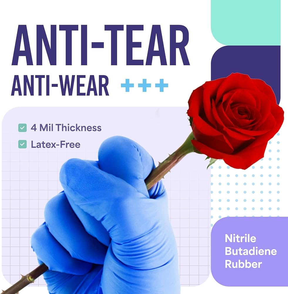 • [Anti-tear, Anti-wear] - Enhance your safety with latex-free nitrile gloves, expertly crafted with a 4 mil thickness for reliable protection. Experience unmatched comfort and peace of mind with gloves designed for worry-free use across various applications. Elevate your hand's protection and choose the trusted quality that defines excellence