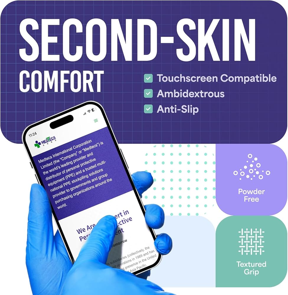 • [All Size Available] - Discover Medtecs, the trusted gloves tailored to your needs. Latex-free and ambidextrous, backed by a worry-free 60-day warranty. Available in all sizes, from XS to XL, for uncompromised protection and comfort. Embrace the fusion of safety and reliability with Medtecs – your partner in hand protection.