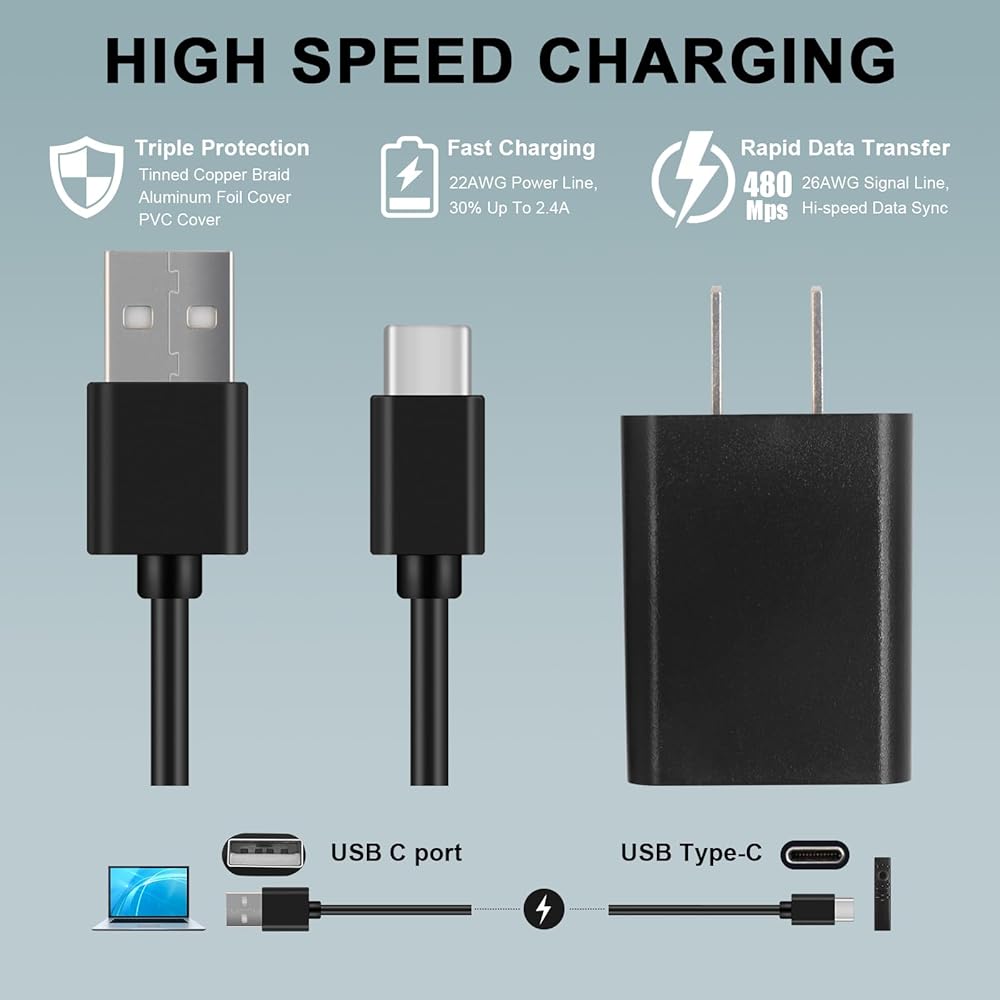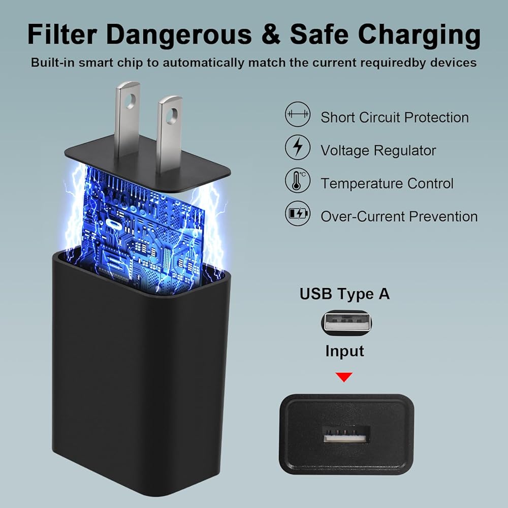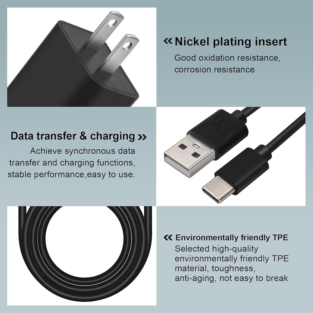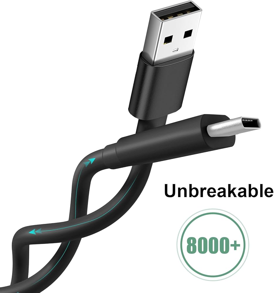 يعتمد كابل USB C على مادة PVC سميكة، وقد تم اختبار جودته من قبل الشركة المصنعة لتحمل أكثر من 10,000 انحناء. يحتوي الشاحن على نظام أمان يضمن الحماية الكاملة لك ولأجهزتك. الإخراج: 5 فولت 2 أمبير الإدخال: 100-240 فولت 50-60 هرتز. شحن سريع وآمن للغاية
