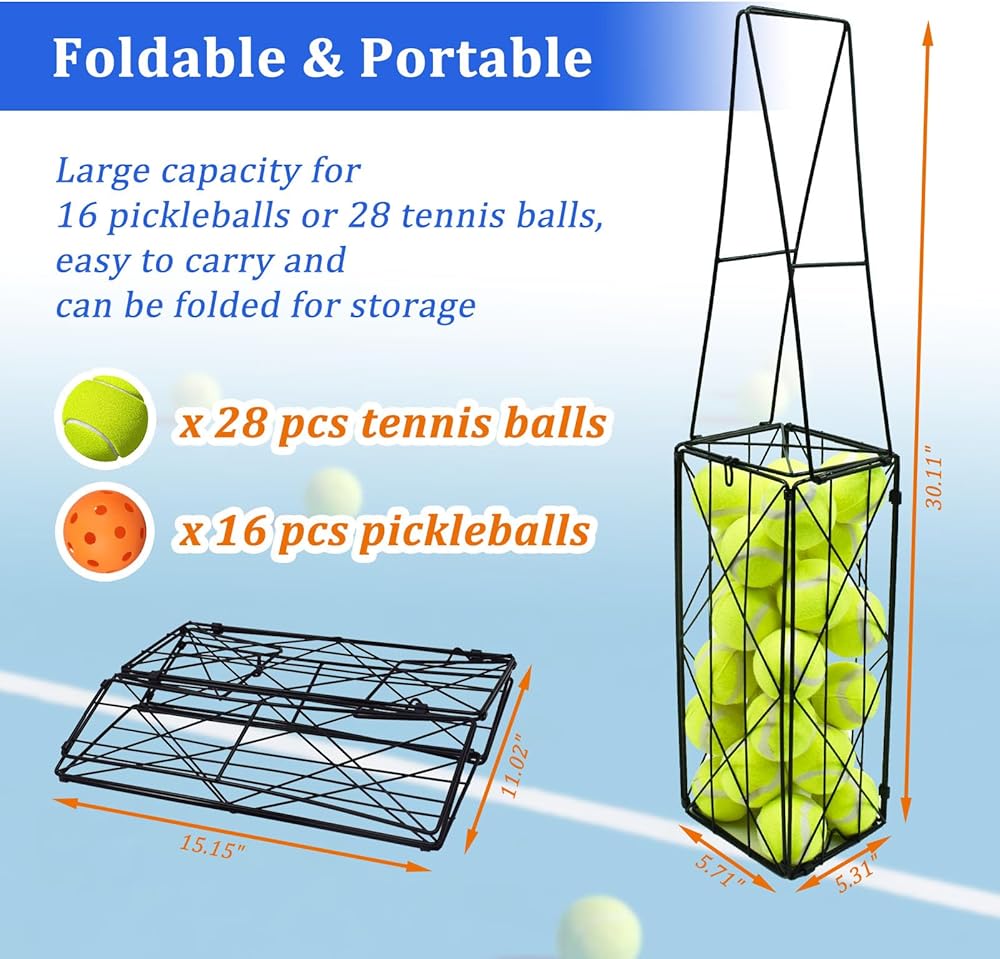 🌟【Foldable Design】This pickleball ball retriever is made of high-quality steel, designed for pickleball tennis balls picking up, just need a a few minutes to complete the installation. When not in use, you can fold up this tennis pickup basket for storage, saving space, easy to carry.