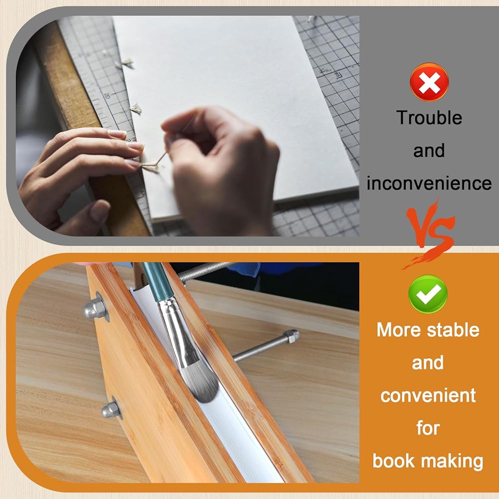 استخدام متعدد الاستخدامات: مثالية لربط الكتب، ويمكن أيضًا استخدام هذه الأداة للضغط على الزهور أو الورق، مما يجسد جوهر الضغط الورقي اليدوي وضغط الزهور. تصميمه المدمج وخفيف الوزن يجعله إضافة مفيدة لأي مجموعة لوازم مكتبية أو مجموعة أدوات لعشاق الحرف اليدوية، بما في ذلك أولئك الذين يستخدمون غراء تجليد الكتب أو غراء PVA لتجليد الكتب.