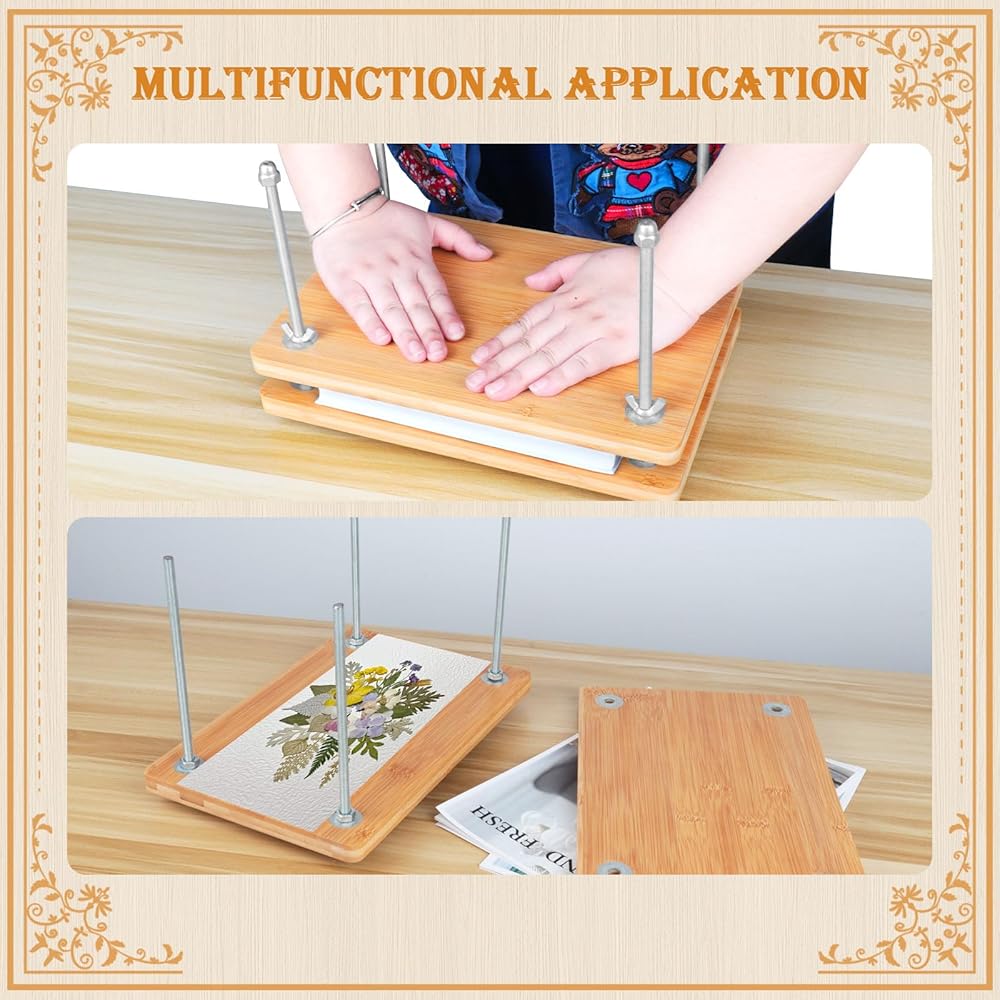 مجموعة ضغط الزهور/الكتب ---مقاس ضغط الكتب الكبيرة 30*20 سم، مكبس تجليد الكتب مصنوع بنمط خشبي، مما يمنحه مظهرًا بسيطًا؛ بفضل سطحه الأملس وزواياه المستديرة، فإنه لا يضيف جاذبية جمالية فحسب، بل يضمن أيضًا لمسة مريحة أثناء الاستخدام