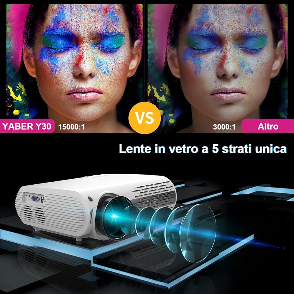جهاز عرض YABER Y30 أصلي 1080 بكسل، سطوع 15000 لتر، جهاز عرض فيديو عالي الدقة 1920 × 1080، ±50 درجة 4D تصحيح الانحراف يدعم 4K والتكبير، جهاز عرض مسرح منزلي LED LED متوافق مع الهاتف، الكمبيوتر الشخصي، صندوق التلفزيون، PS4