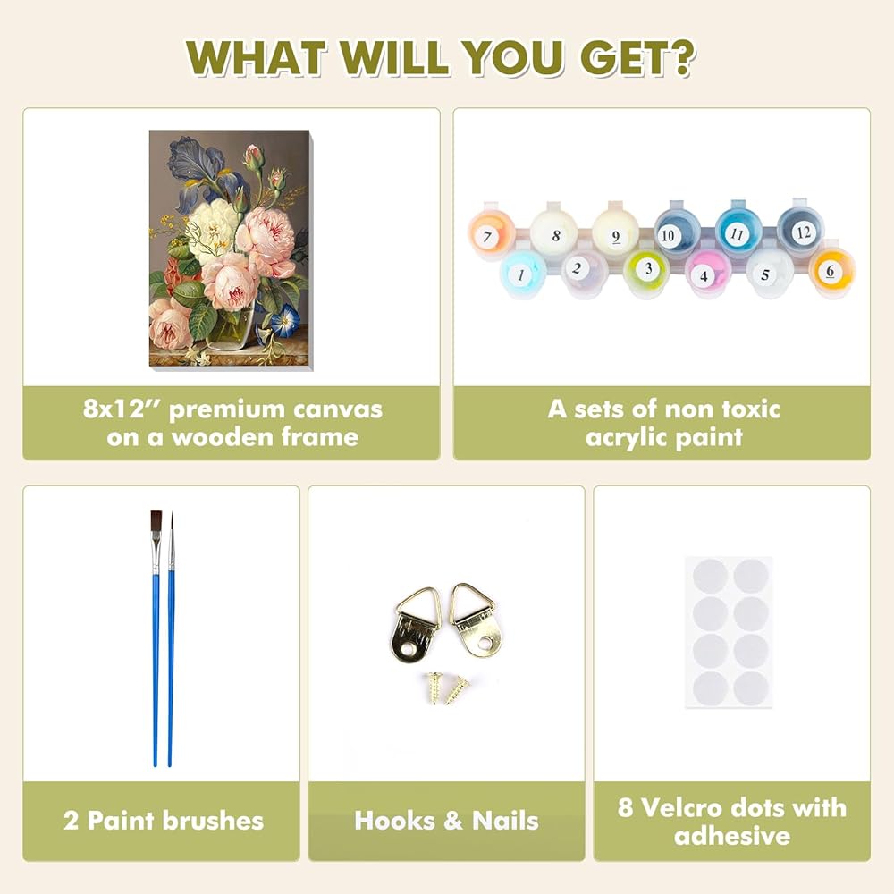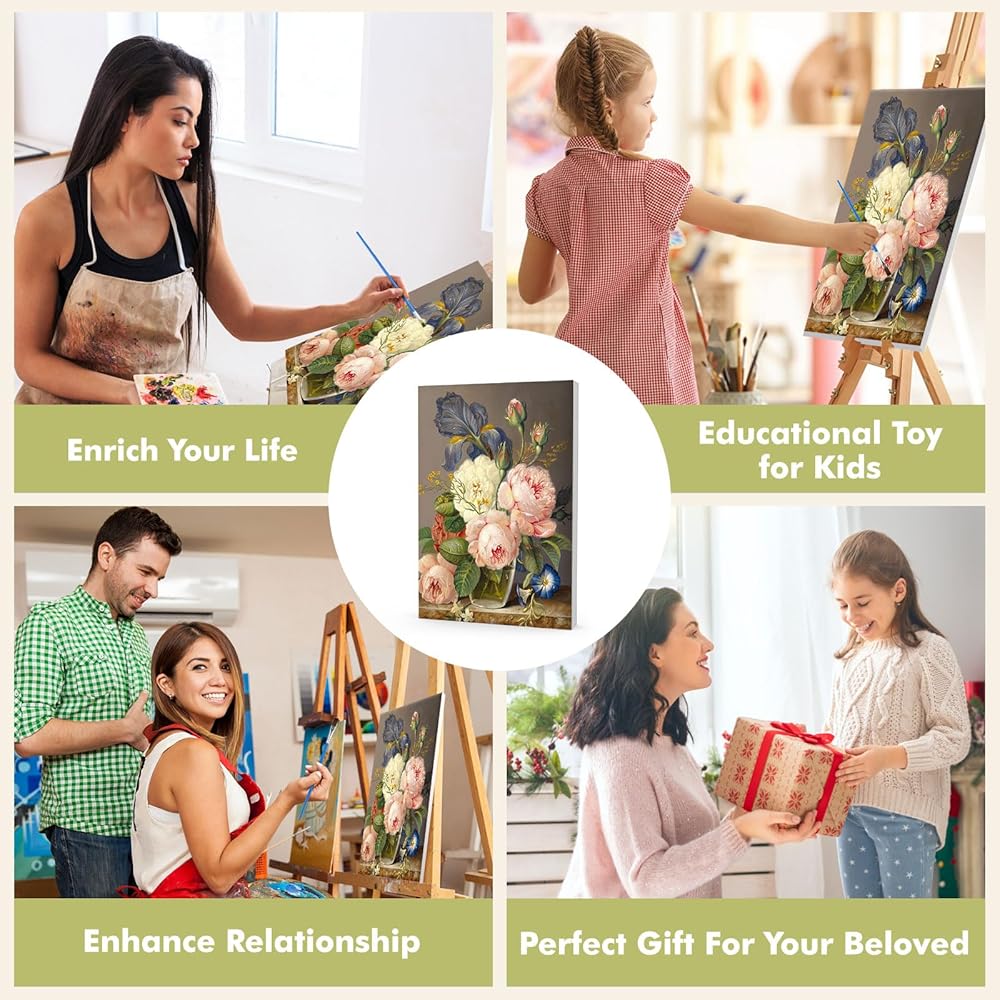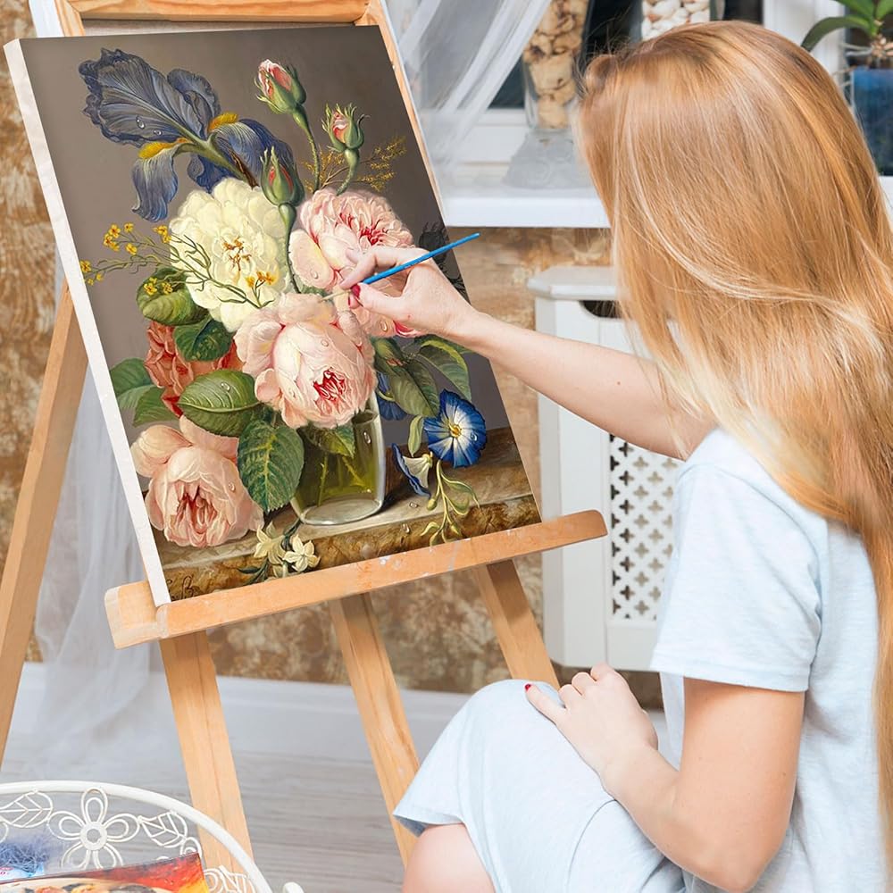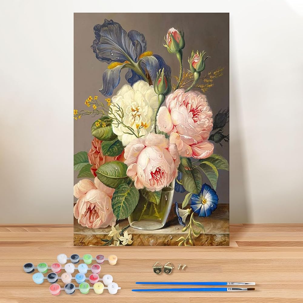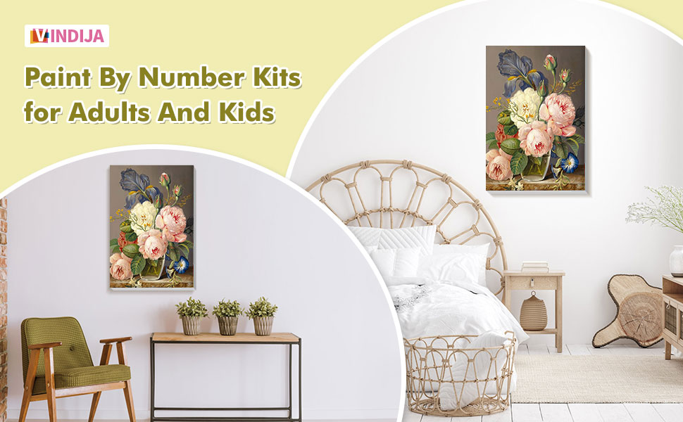 vindija الطلاء بالأرقام عدة للبالغين والأطفال المبتدئين، الزهور الكبار الطلاء حسب الأرقام مجموعات على قماش مؤطرة، اللون بالأرقام للبالغين، مجموعات الحرف الفنية للفتيات الذين تتراوح أعمارهم بين 8-12 الكبار، 8x12in