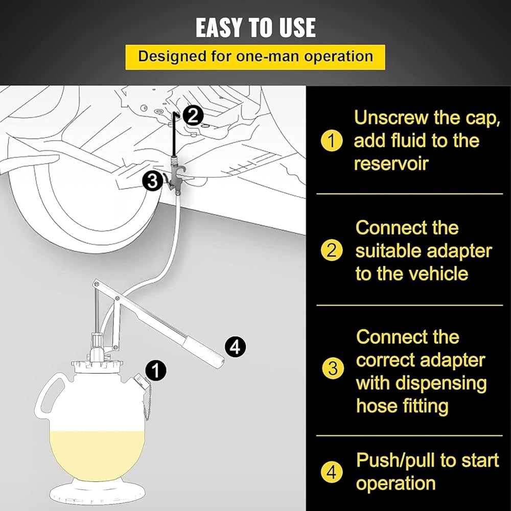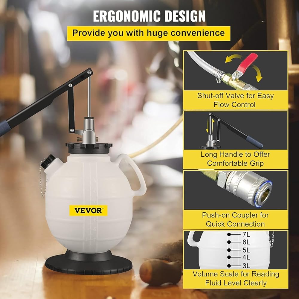 【موزع سائل ناقل الحركة 7.5 لتر】 مضخة سائل ناقل الحركة لدينا بسعة كبيرة 7.5 لتر. فهو يوفر طريقة سهلة لتوزيع سائل ناقل الحركة، مما يحافظ على تشغيل نظام الفرامل بسلاسة.