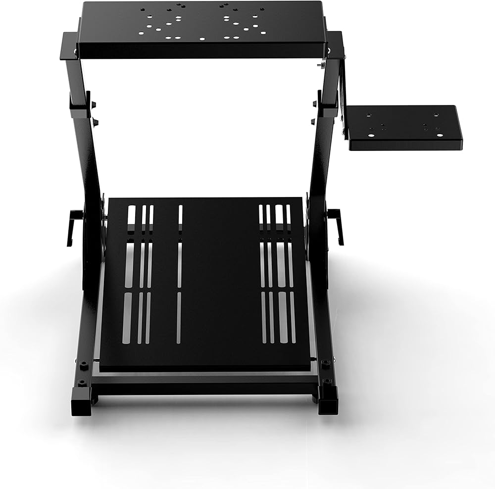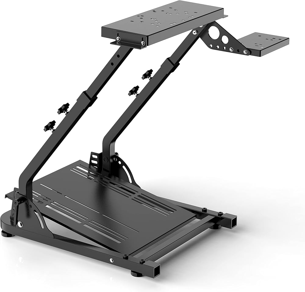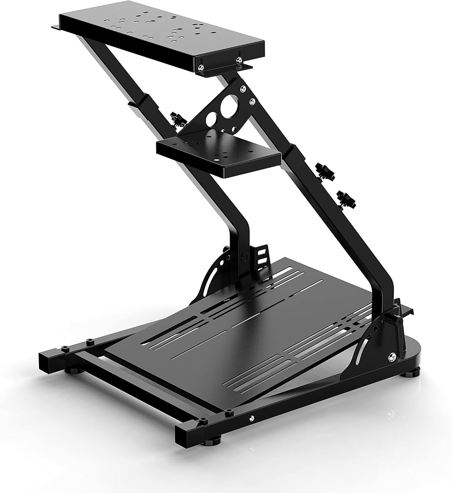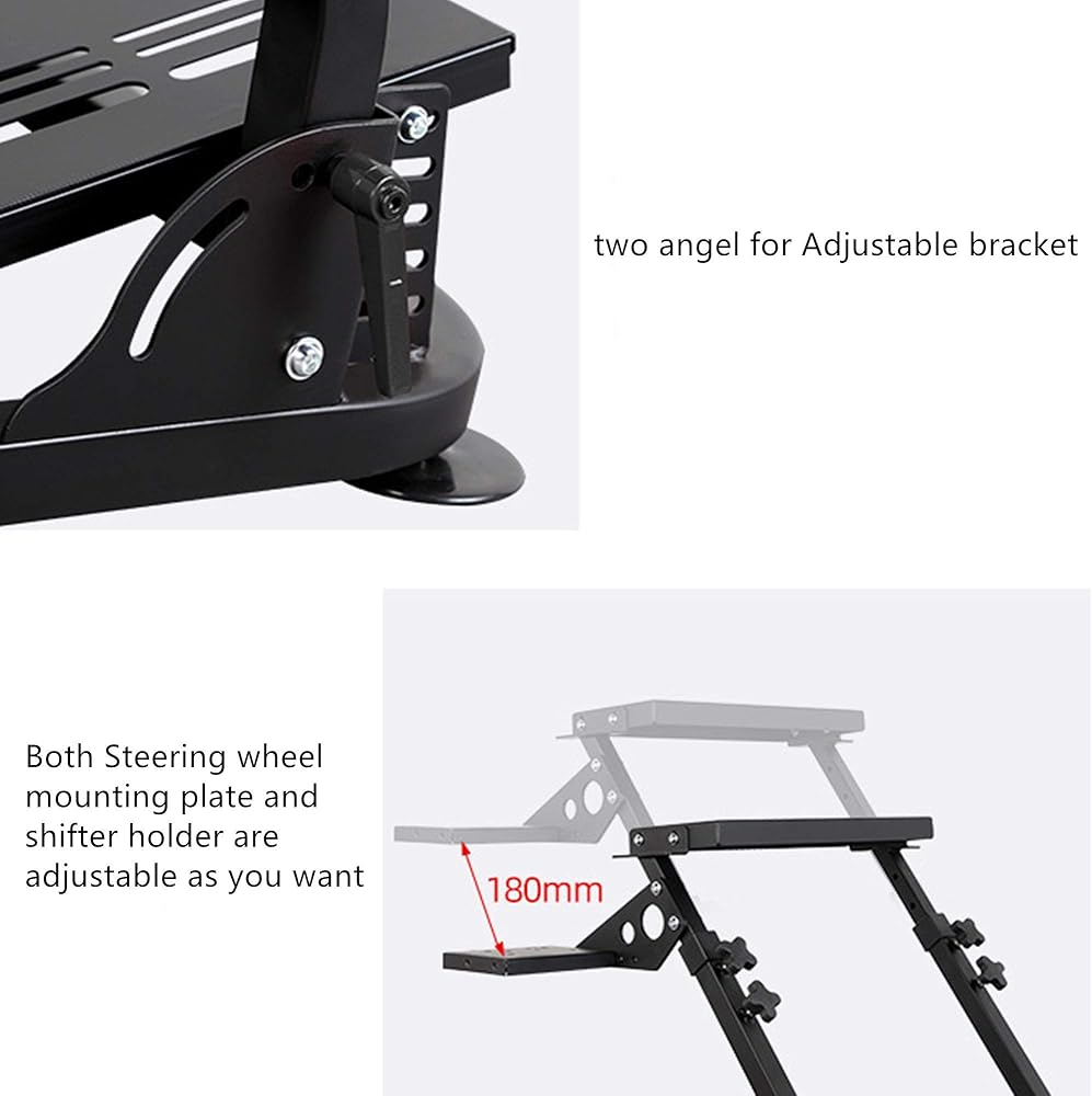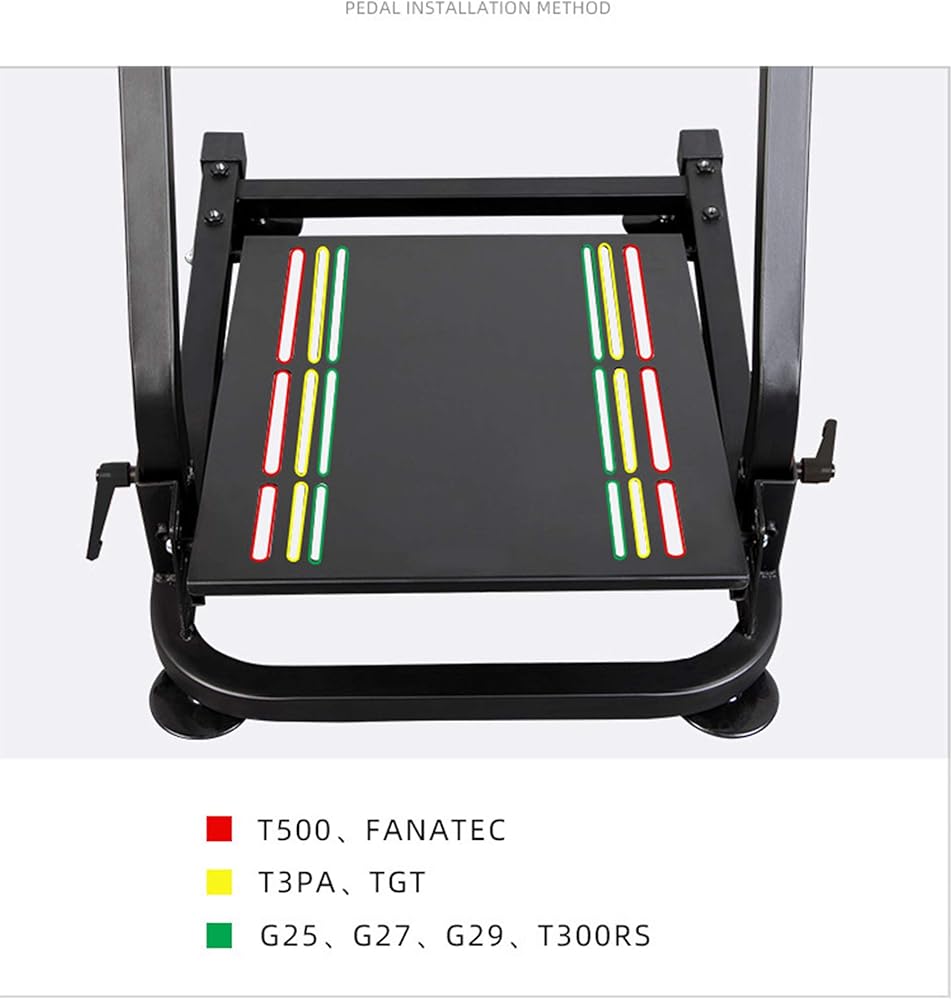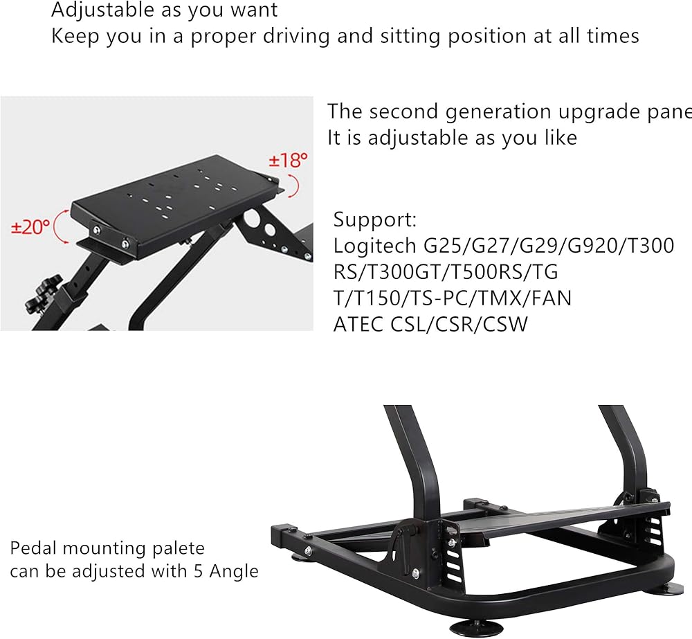 This is the new updated version Racing Wheel Stand Height Adjustable Driving Simulator Cockpit Compatible with Logitech G25/G27/G29/G920/T300RS/T300GT/T500RS/TGT/T150/TS-PC/CSL/CSR/CSW The maximum thickness of steel pipe is 6MM, which is very strong and can withstand many years of use. The rubber feet combined with the steel tubes make for a smooth driving experience. This wheel stand features a twin spar design, this design offers greater rigidity and an improved access to the pedals themselves for‘Heel n Toe' driving. It is used in any applicable situation, from driving with an office chair to dining table chairs and even a sofa! The large tube at the back of the bottom rails can be quickly adjusted in or out to fit the tallest and the shortest of gamers. Notice: Wheel, Shifter and Pedals NOT included