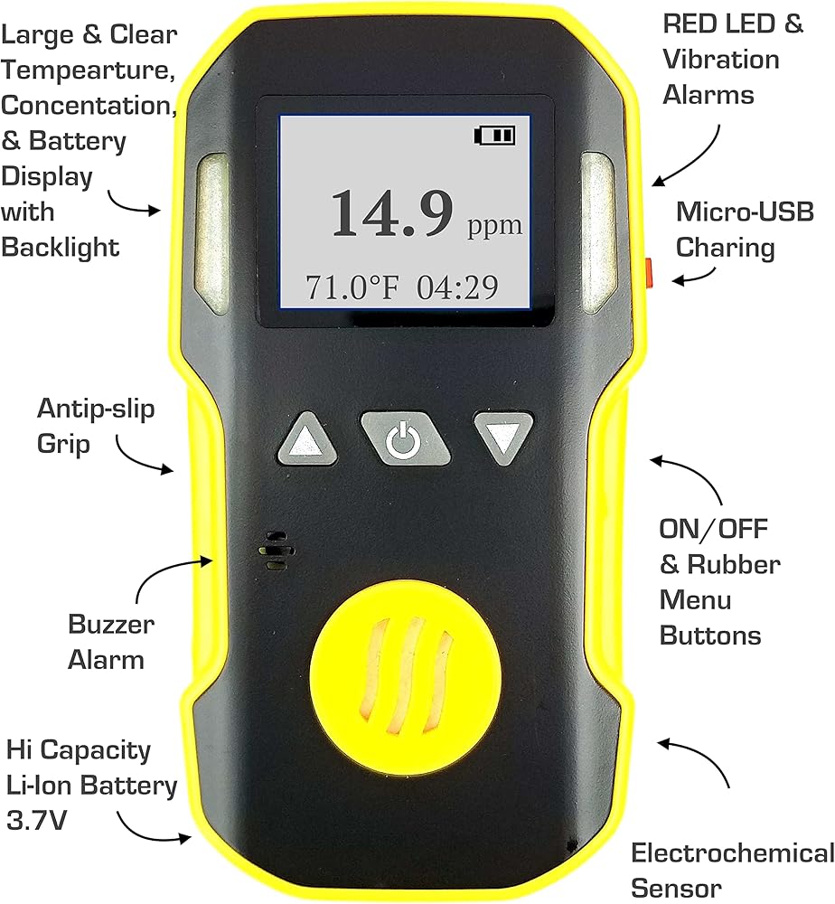 • ⚛️ الكشف: مستشعر الخلايا الكهروكيميائية به خطأ ≥ ± 5% F.S. وزمن الاستجابة: T <30 ثانية. خيارات معايرة الصفر والامتداد. تأتي بمعايرة المصنع.