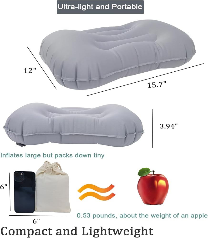 ✅تصميم صغير الحجم ومحمول: تزن وسادة التخييم القابلة للنفخ هذه بضع أونصات فقط، وهي مصممة لتحقيق أقصى قدر من سهولة الحمل. يمكن طيها أو ضغطها بسهولة، مما يجعلها تشغل مساحة صغيرة في حقيبة الظهر أو معداتك. يضمن حجمه الصغير حصولك دائمًا على حل نوم مريح في متناول يدك، دون المساس بالراحة.