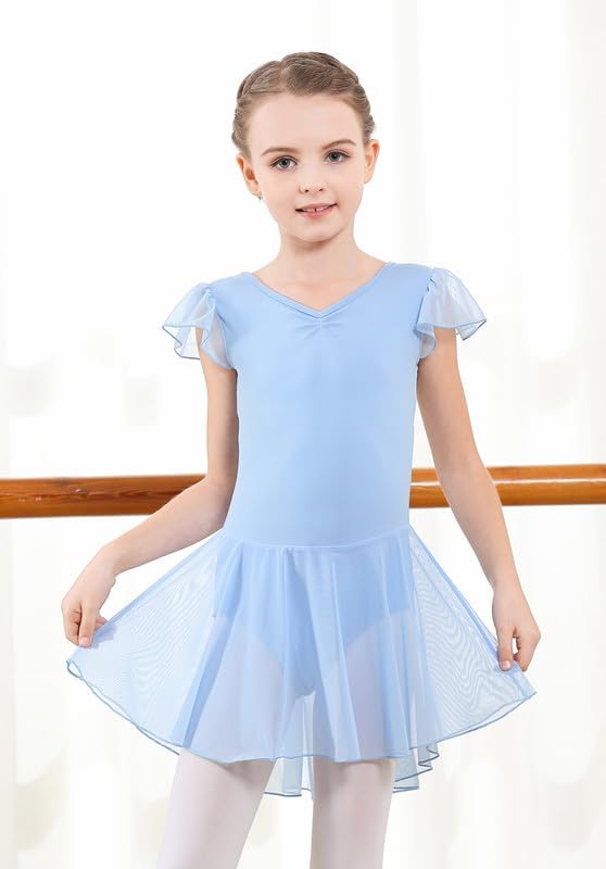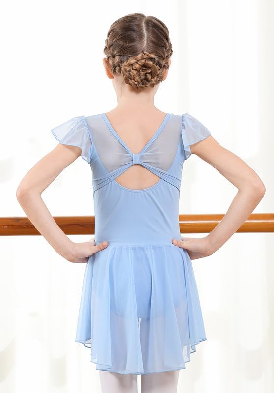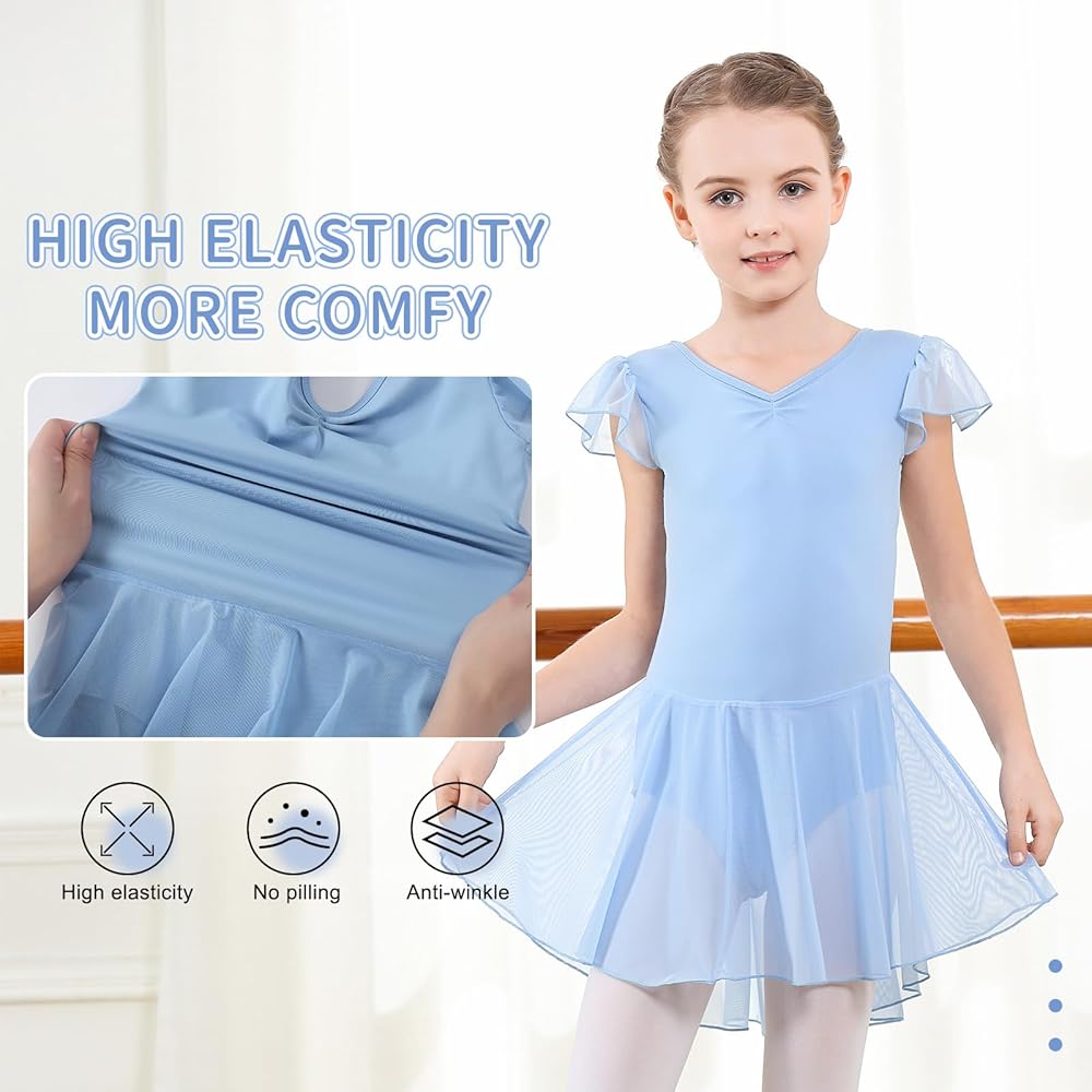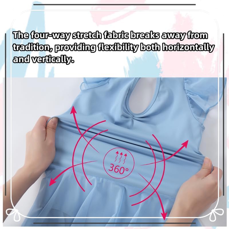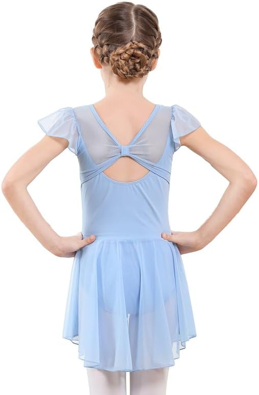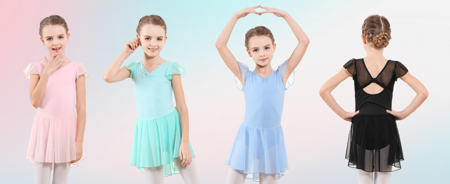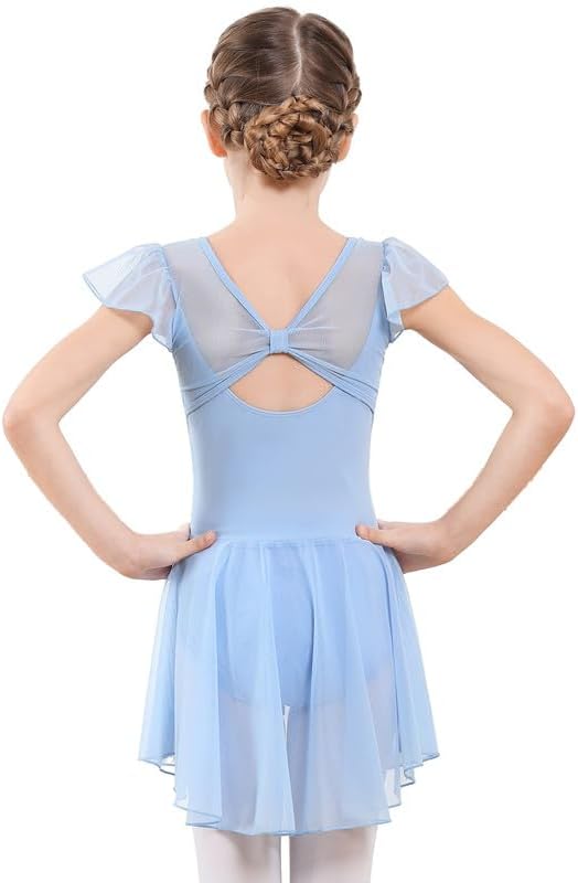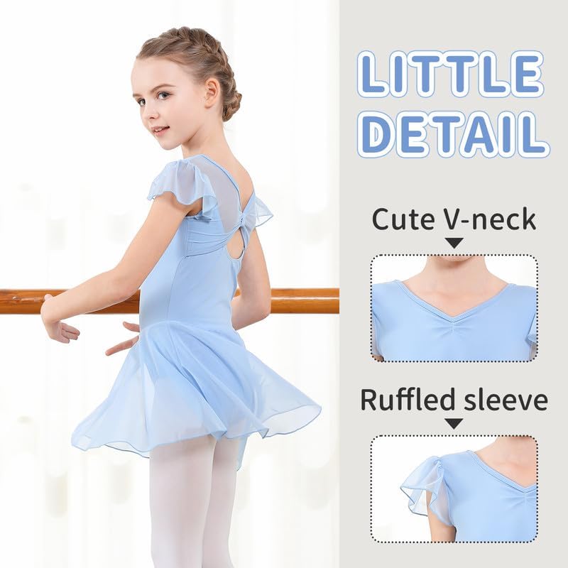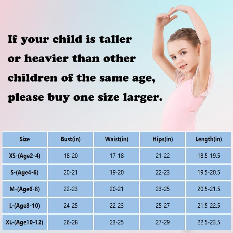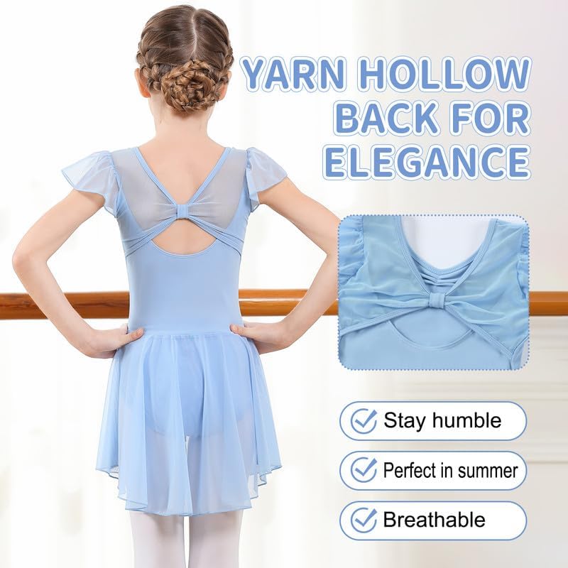 تصميم فريد: تتميز ثياب الرقص للفتيات بتصميم بأكمام مكشكشة، مما يضفي لمسة حيوية ورشيقة. التصميم المجوف الخاص على الظهر، والمزين بفيونكة، يبرز جاذبية الطفل. تم تصميم تنورة الباليه للفتيات لتكون أقصر من الأمام وأطول من الخلف، مما يخلق مظهرًا ملفتًا للنظر عندما يدور الطفل ويرقص.