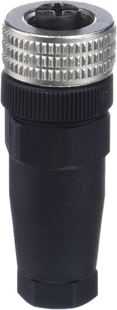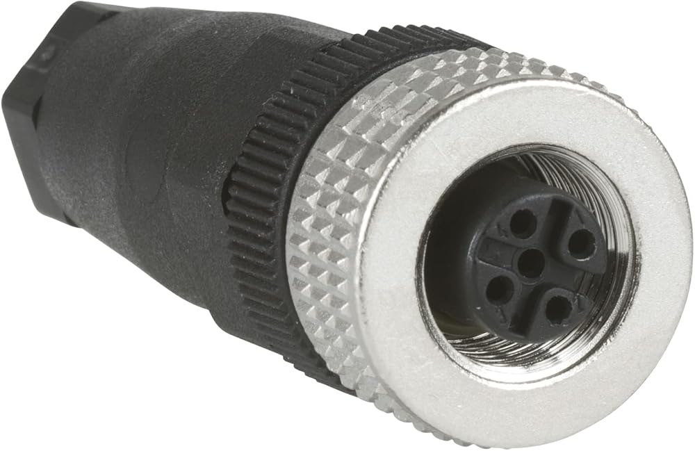 This Telemecanique XZCC12FDM40B female straight M12 connector accepts four pins, comes with a Pg 7 cable gland, and has a metal collar.