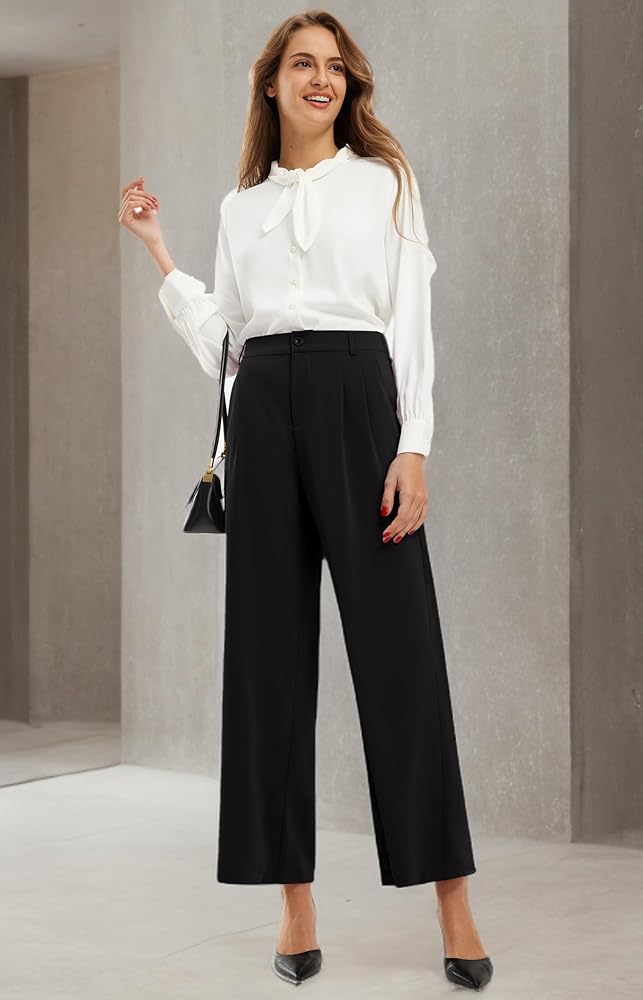 تصميمات رائعة ---- يتميز بطيات أمامية لمزيد من مساحة الورك وخصر خلفي مرن مع حلقات حزام لراحة طوال اليوم، كما يوفر البنطلون ذو الأرجل الواسعة مقاسًا فضفاضًا وأنيقًا يعزز مظهرك بشكل جميل.