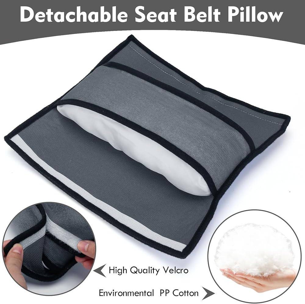 غطاء حزام الأمان قابل للإزالة والغسل - غطاء وسادة حزام الأمان القابل للفصل سهل التنظيف ولا ينكمش أو يتشوه لذلك سيدوم لفترة طويلة من الاستخدام. سهل الاستخدام، ما عليك سوى إضافة وسادة حزام الأمان العالمية إلى حزام الأمان