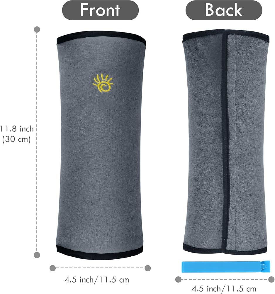 حجم مثالي - وسادة حزام مقعد السيارة مقاس 11.8 بوصة × 4.7 بوصة تناسب الجميع لرقبة وكتف الأطفال. يمكن أن يناسب غطاء حزام مقعد السيارة المريح هذا جميع أنواع أحزمة الأمان وينزلق بسهولة على جميع مقاعد السيارة تقريبًا.