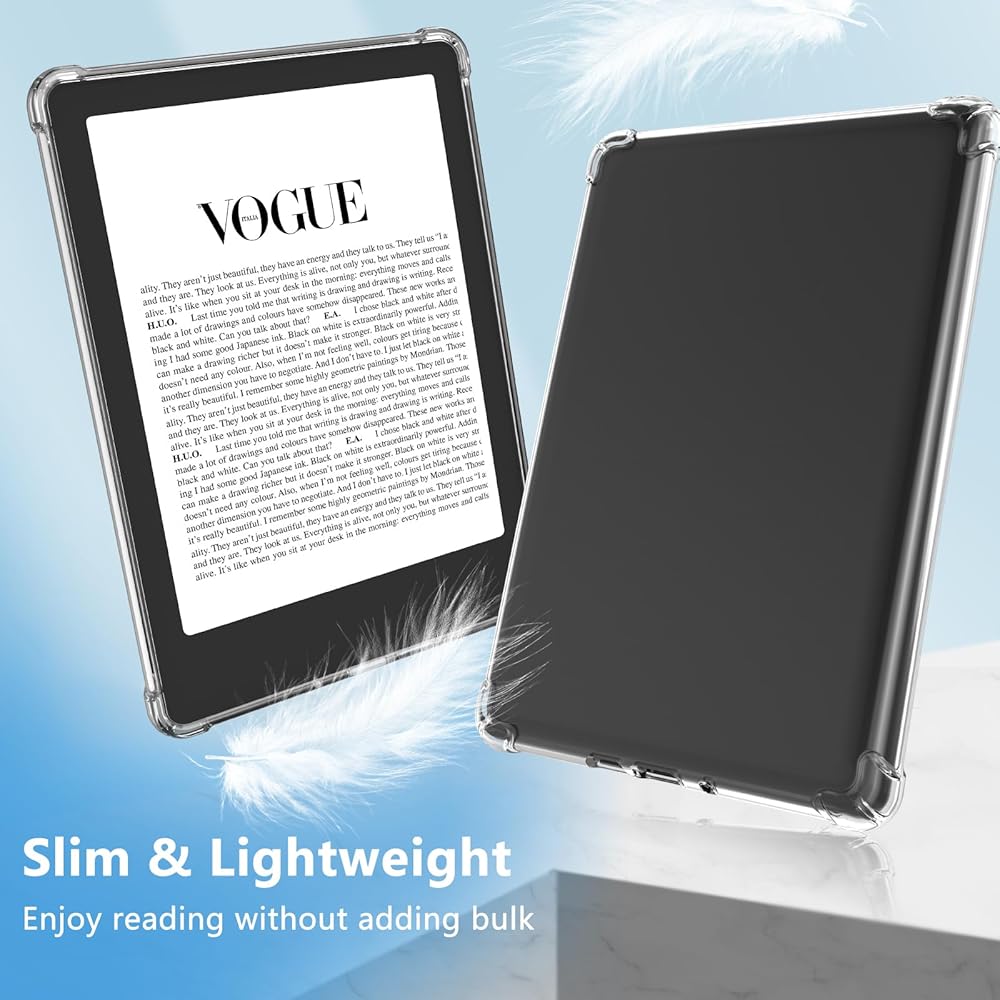 • 【حماية ممتازة من المواد 】-مصنوع من مادة TPU الناعمة، الغطاء متين وخفيف الوزن وواقٍ. يحمي التصميم الشفاف والمقاوم للماء جهازك اللوحي Kindle Paperwhite (الجيل الحادي عشر-2021) الثمين بشكل مثالي مع مظهر أنيق.