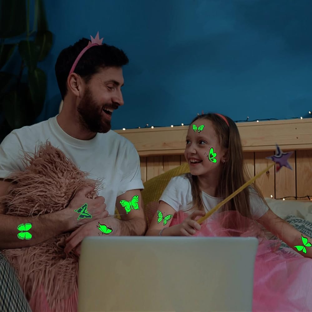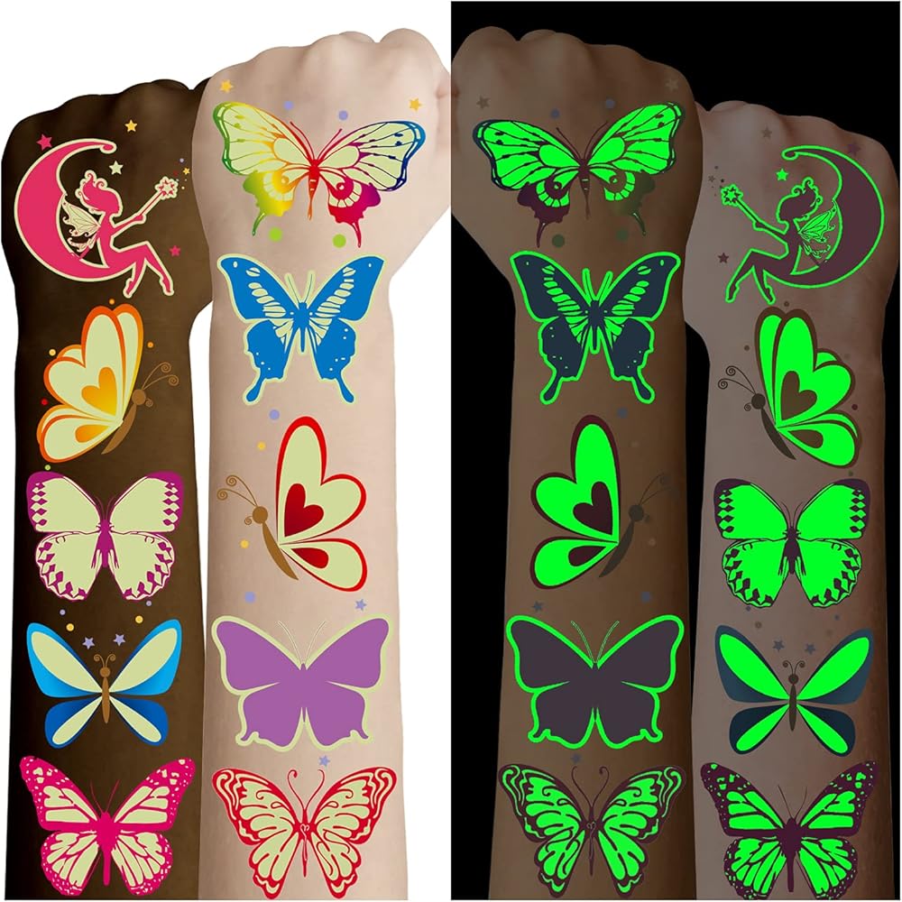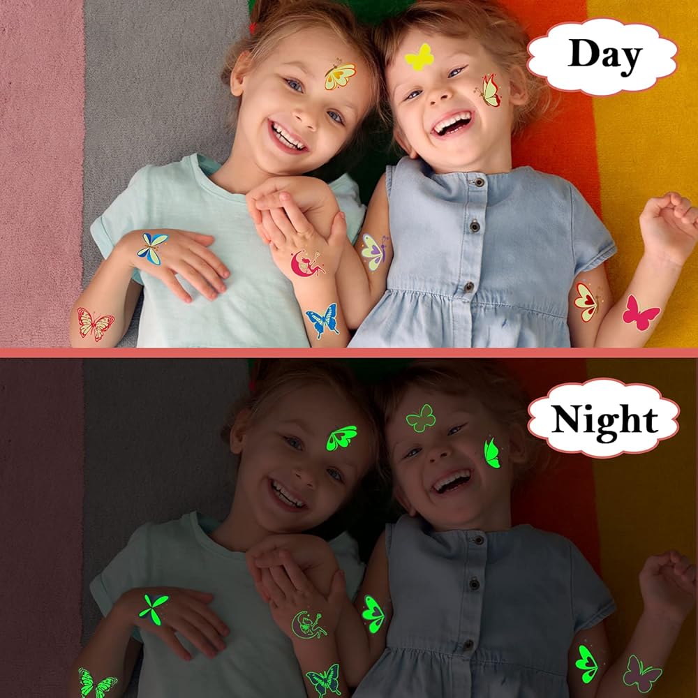 • 【Perfect Butterfly Party Decoration】Cerlaza luminous butterfly tattoos make your party surprise! Butterfly stickers patterns are colorful and plentiful, it's a perfect choice for butterfly party decorations. Kids can freely share butterfly tattoos with their friends at butterfly party. The tattoos are sticked on their bodies to bring joy to them, especially at night, glowing butterflies let girls shine!