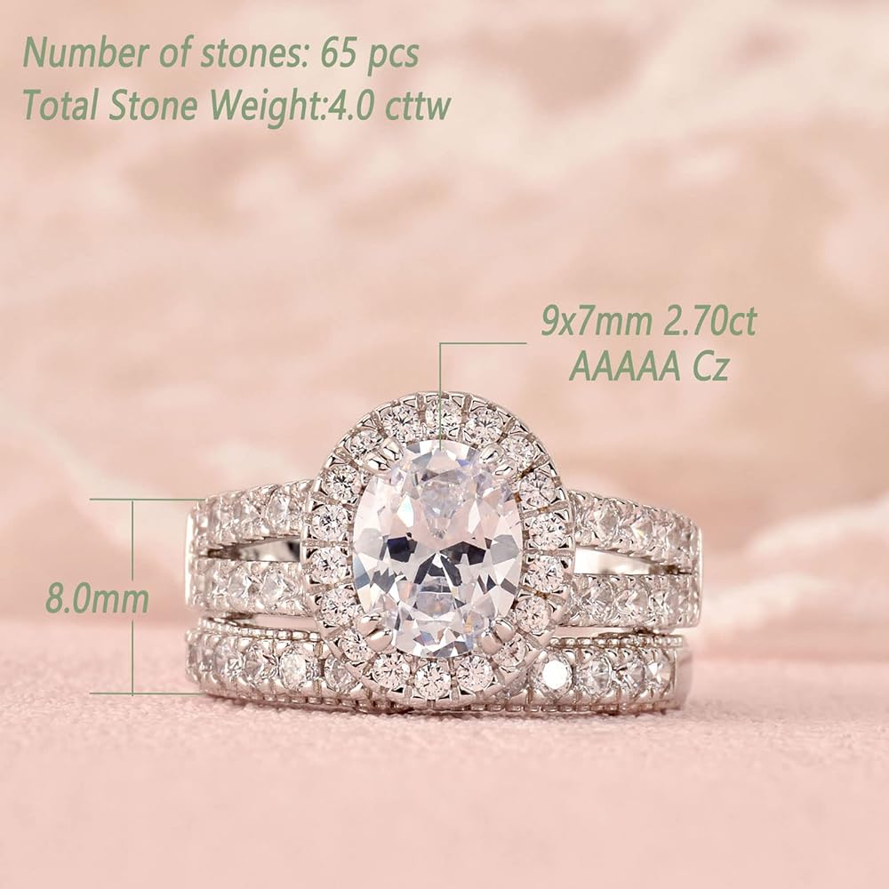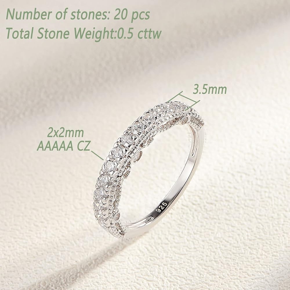 Wuziwen 4 قيراط خواتم خطوبة الزفاف للنساء من الفضة الاسترليني مكعب زركونيا 3.5 ملم عصابات الخلود للنساء خمر الفضة الاسترليني تشيكوسلوفاكيا تكويم حلقة محسن حجم 5