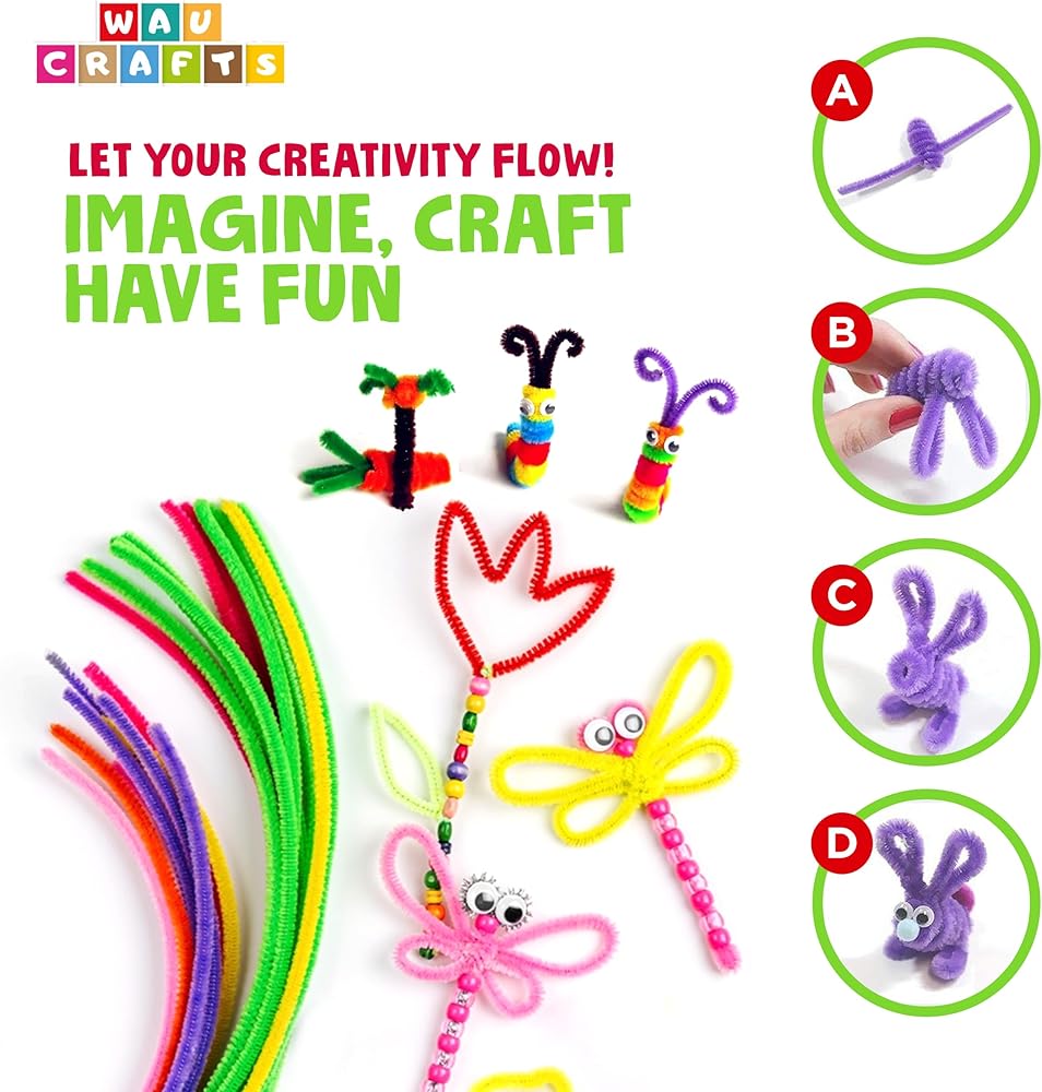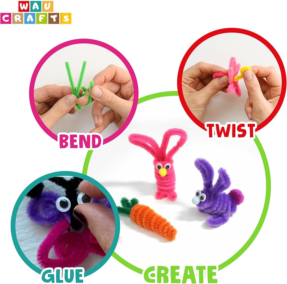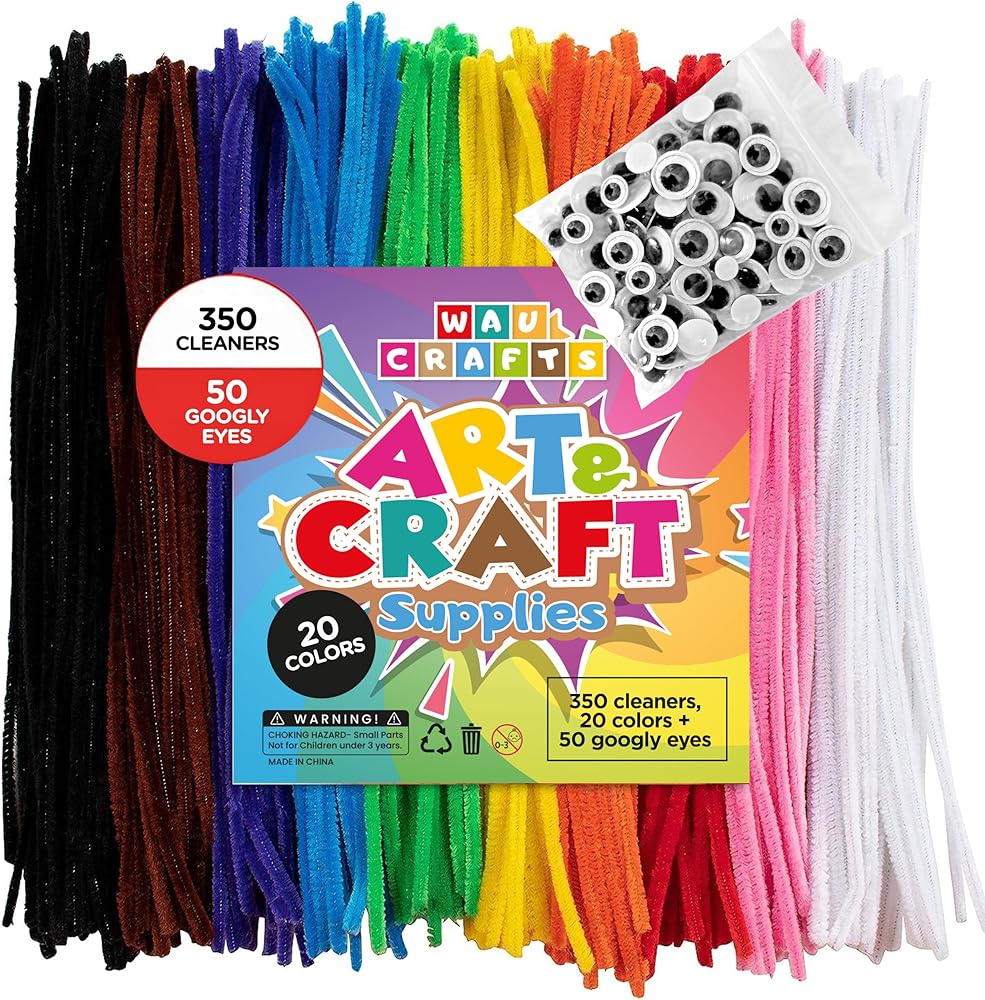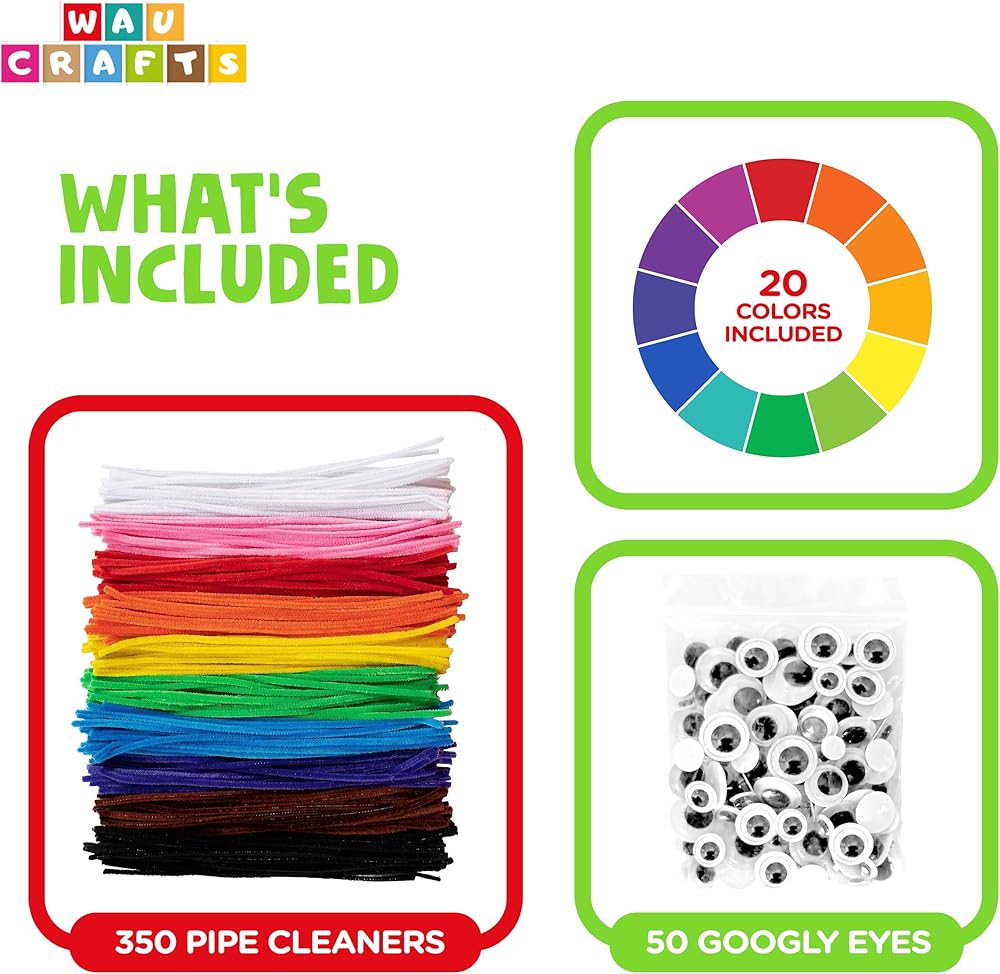 400 قطعة - 350 منظف أنابيب بـ 20 لونًا + 50 عين جوجلي - مجموعة سيقان شانيل للحرف اليدوية وديكورات المنزل (12 بوصة × 6 مم)